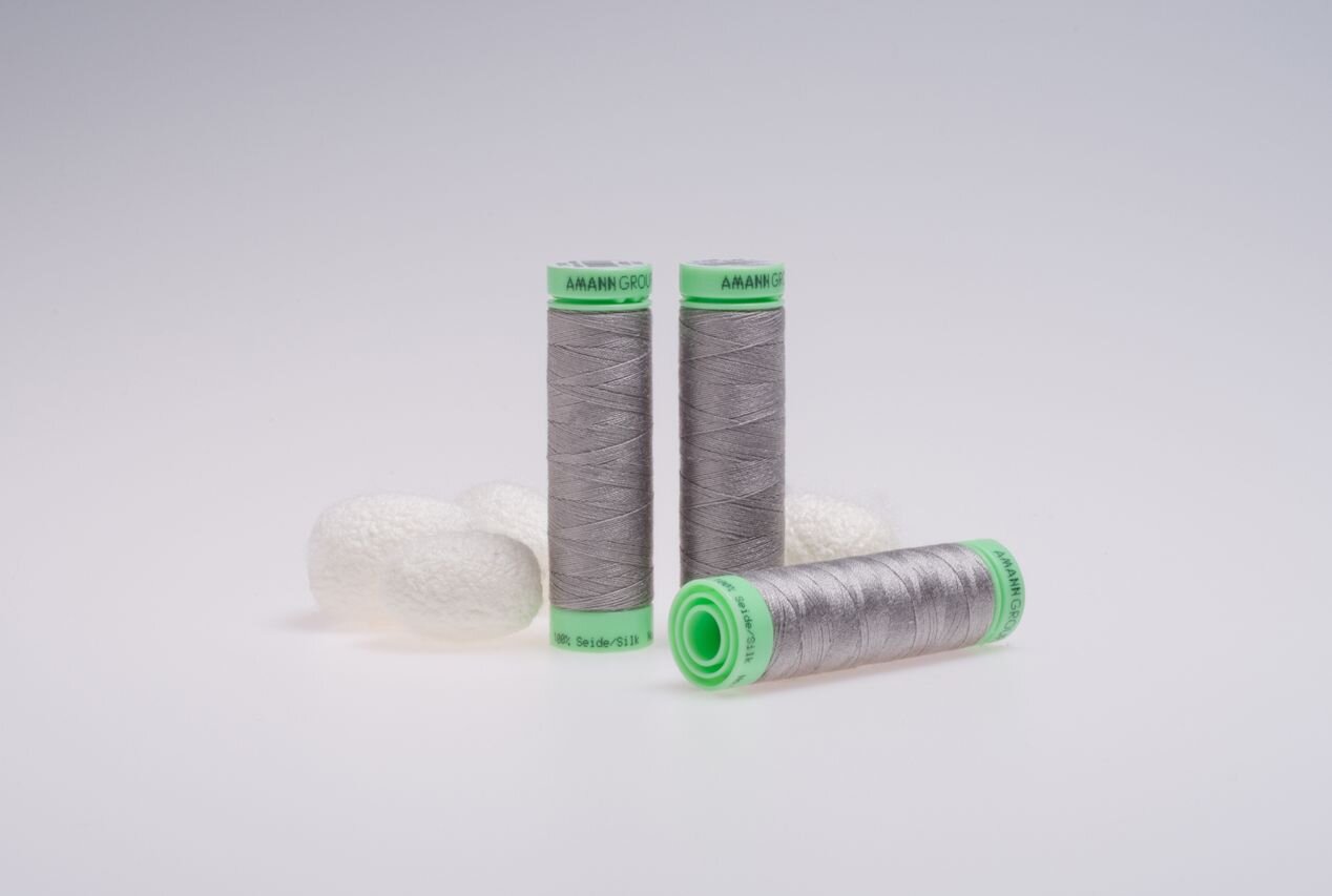 Pevná nit ze 100% přírodního hedvábí na ruční i strojové šití tloušťkou podobná běžným nitím v šedé barvě.