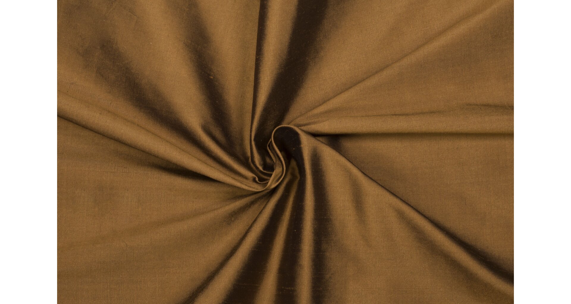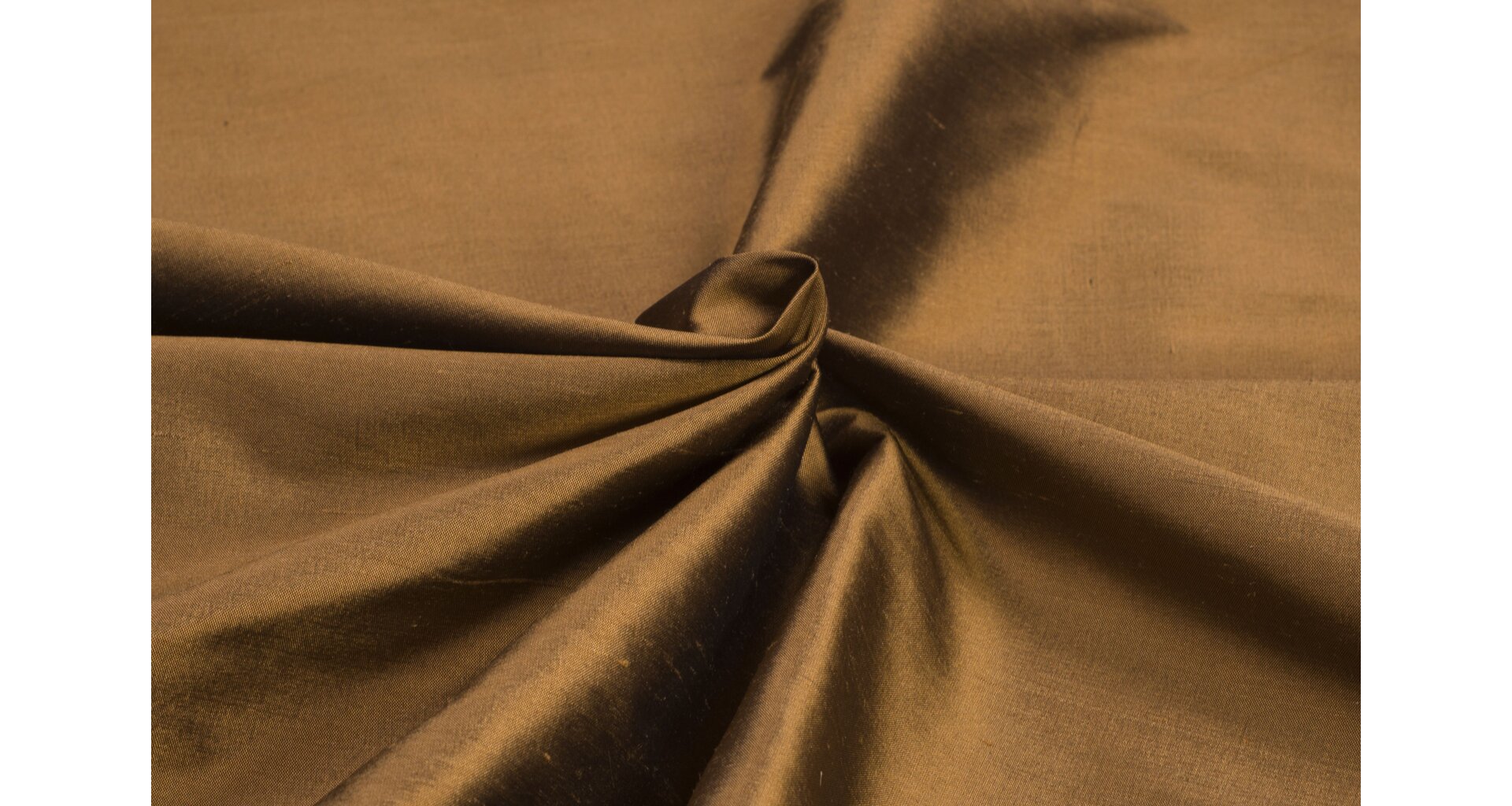 Mírně tuhá hedvábná látka s téměř hladkým povrchem podobná šantungu v bronzové barvě. Hladký dupion využijete na luxusně vyhlížející šaty na ples či na svatbu, ale i na zajímavé sukně, kalhoty a kabátky na běžné nošení nebo do interiéru na polštářky a efektní závěsy.
