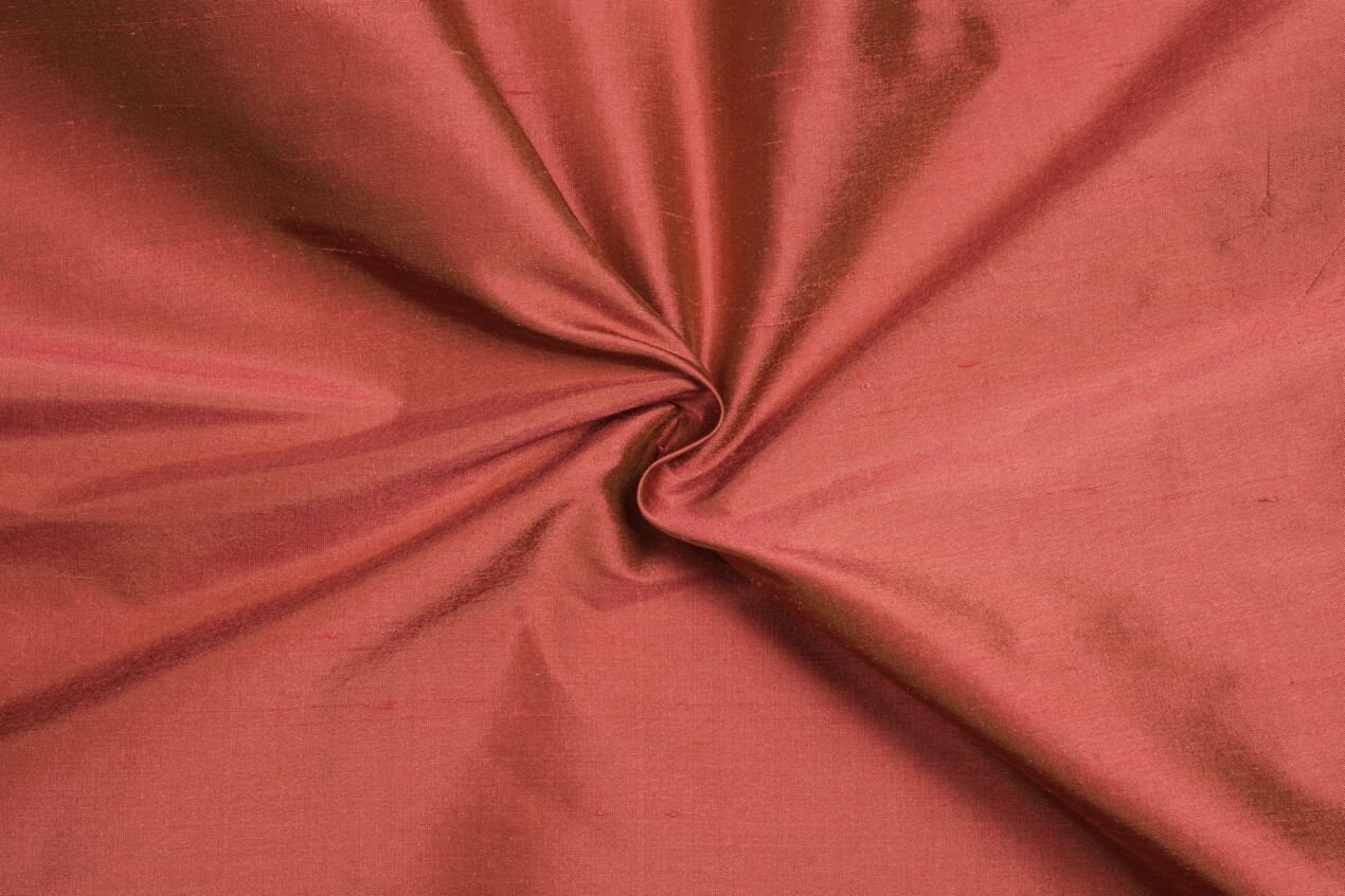 Mírně tuhá hedvábná látka s téměř hladkým povrchem podobná šantungu v korálové barvě. Hladký dupion využijete na luxusně vyhlížející šaty na ples či na svatbu, ale i na zajímavé sukně, kalhoty a kabátky na běžné nošení nebo do interiéru na polštářky a efektní závěsy.
