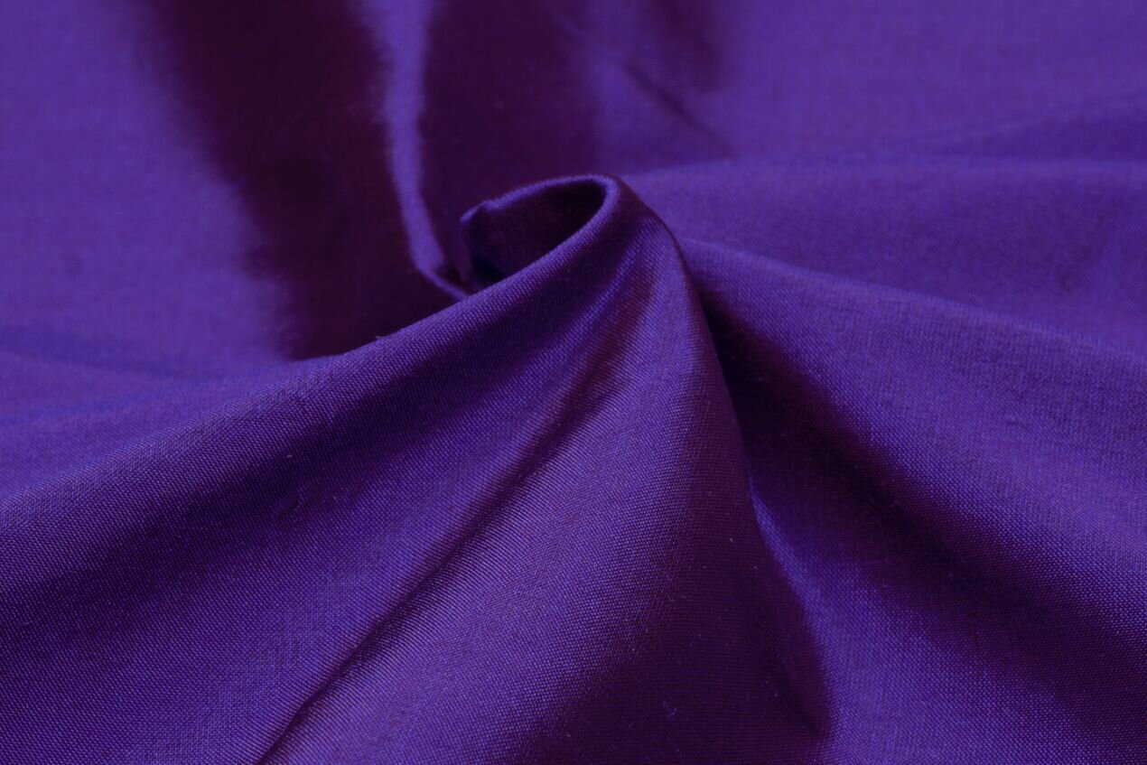 Mírně tuhá hedvábná látka s téměř hladkým povrchem podobná šantungu ve fialové barvě. Hladký dupion využijete na luxusně vyhlížející šaty na ples či na svatbu, ale i na zajímavé sukně, kalhoty a kabátky na běžné nošení nebo do interiéru na polštářky a efektní závěsy.