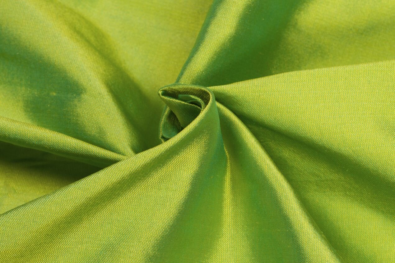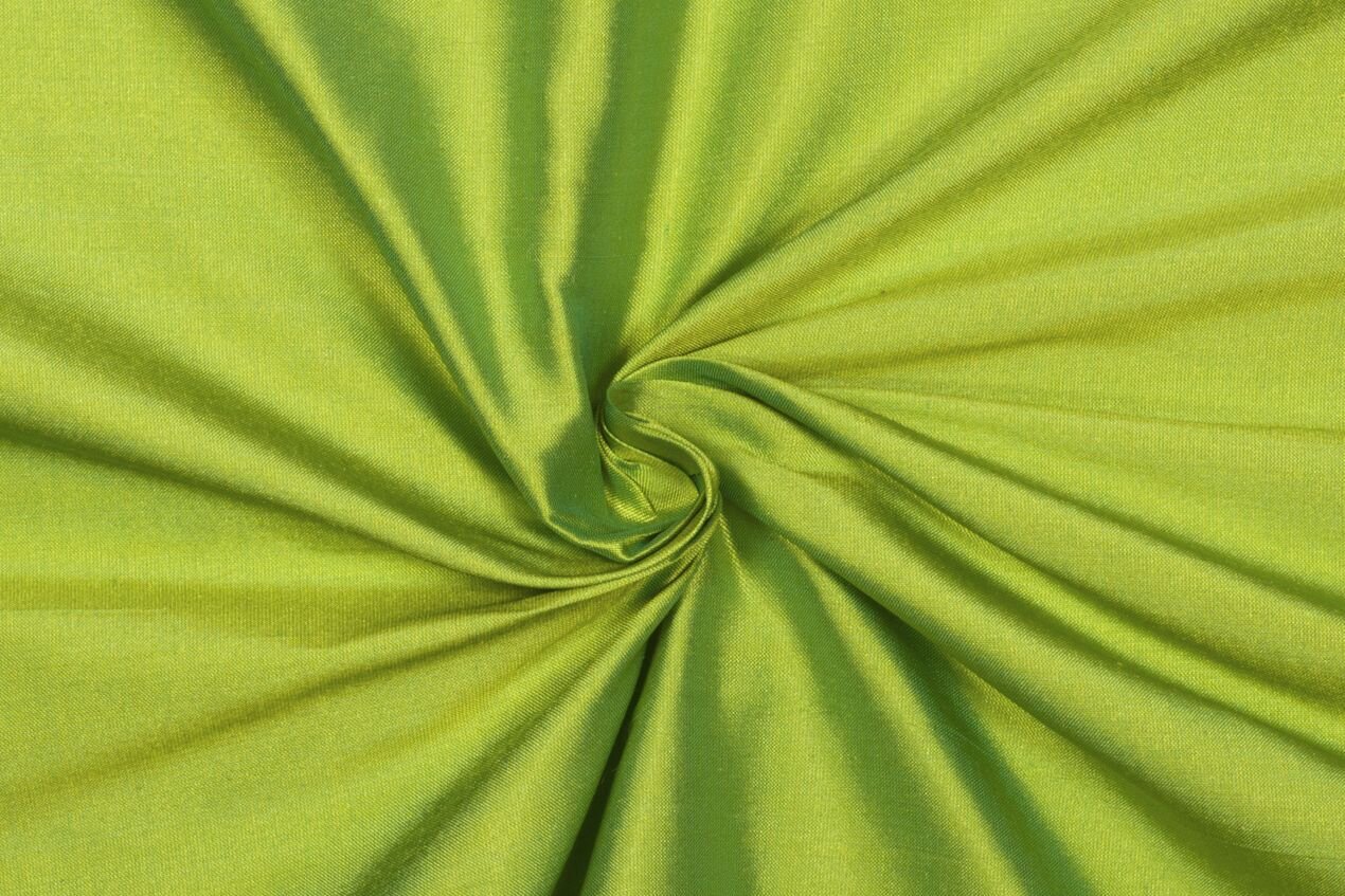 Mírně tuhá hedvábná látka s téměř hladkým povrchem podobná šantungu v zelené barvě. Hladký dupion využijete na luxusně vyhlížející šaty na ples či na svatbu, ale i na zajímavé sukně, kalhoty a kabátky na běžné nošení nebo do interiéru na polštářky a efektní závěsy.