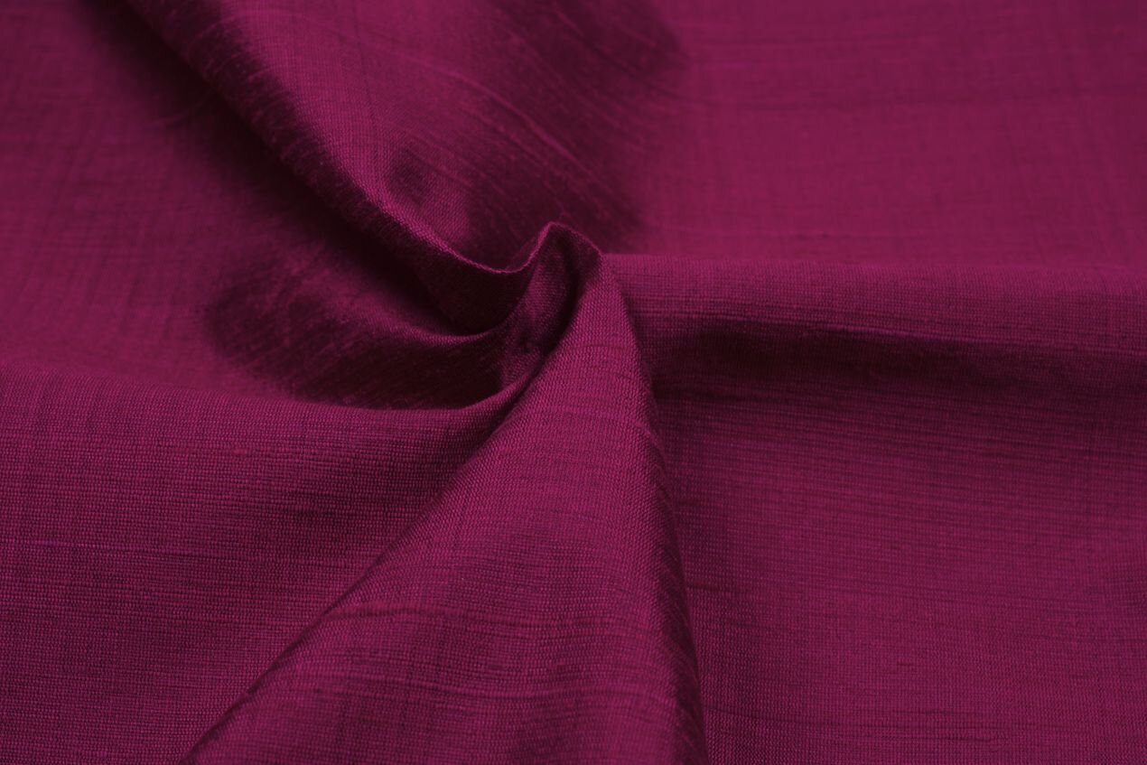 Mírně tuhá hedvábná látka s typickou nepravidelnou strukturou ve vínové barvě. Hedvábný dupion využijete na luxusně vyhlížející šaty na ples či na svatbu, ale i na zajímavé sukně, kalhoty a kabátky na běžné nošení nebo do interiéru na polštářky a efektní závěsy. Dupion je látka tkaná z nestejnoměrně silných dupionových nití. Toto propůjčuje tkanině jedinečný a často žádaný vzhled, zároveň je tím však gramáž látky ve směru tkaní lehce proměnlivá.