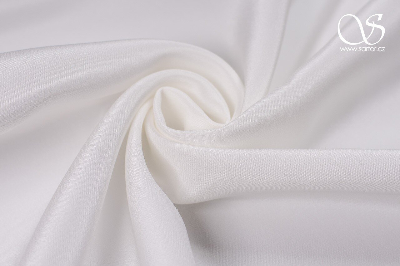 Vysoce luxusní, těžká, splývavá látka z přírodního hedvábí v neutrálním odstínu bílé. Hodí se především na efektní večerní a svatební šaty, ale i na halenky, sukně či zavinovací šaty.