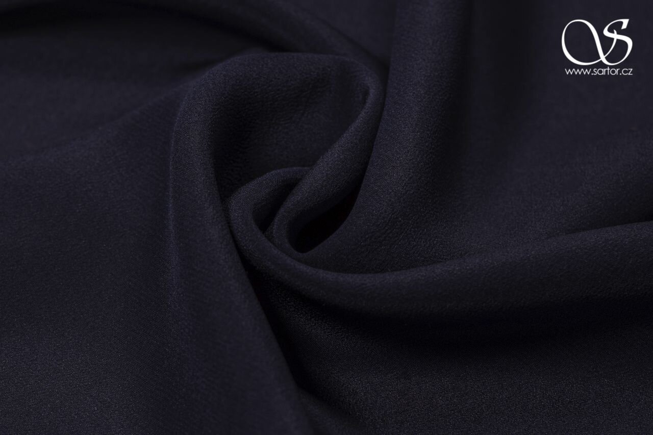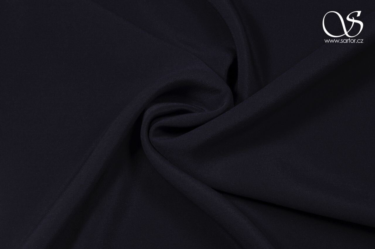 Krásně splývavá hedvábná látka s matným leskem v tmavě modré barvě. Vynikne v šikmém střihu, na společenských i letních šatech a halenkách. Hodí se též na hedvábné šátky a luxusní noční prádlo.
