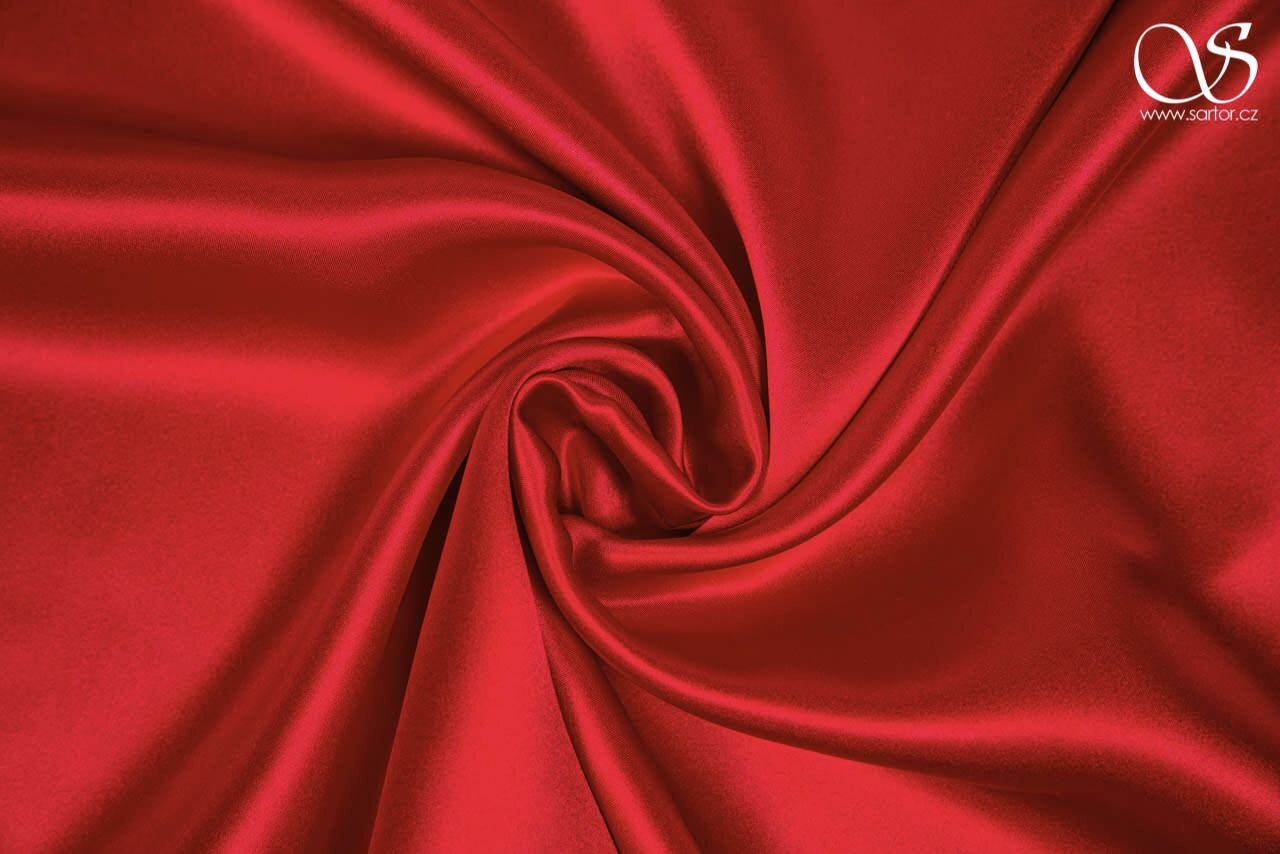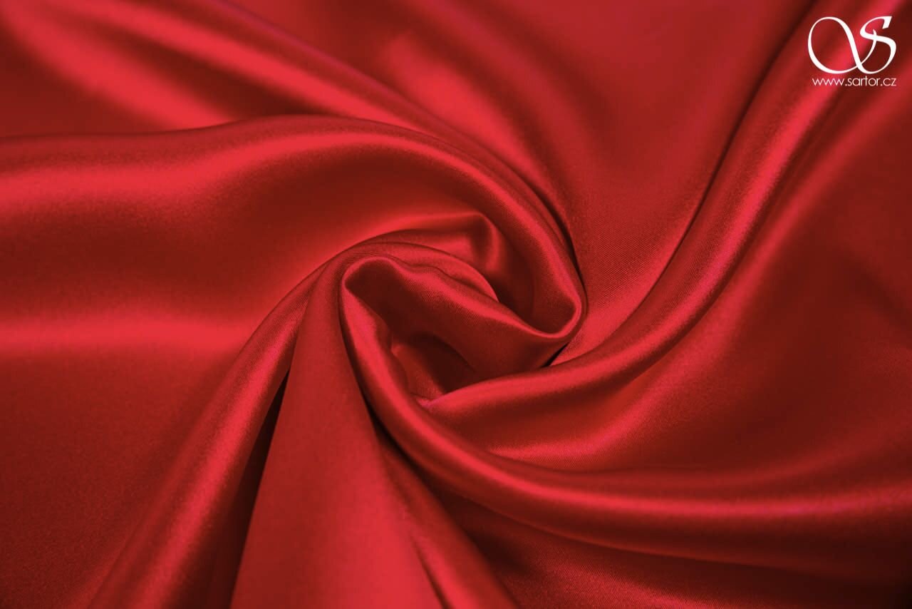 Splývavá hedvábná látka s hladkým lesklým povrchem v červené barvě. Hodí se na halenky, slavnostní šaty i na luxusní noční a spodní prádlo. Výborně si rozumí s šikmým střihem.