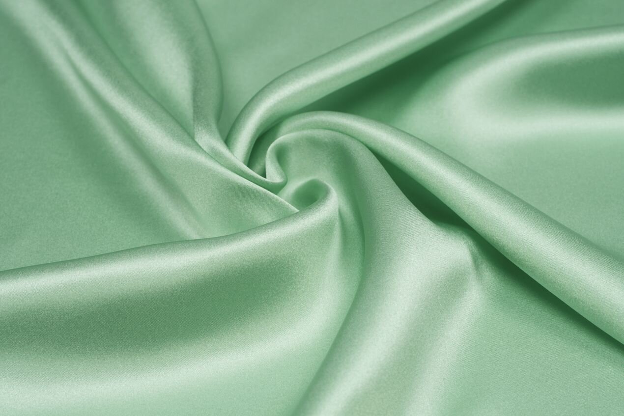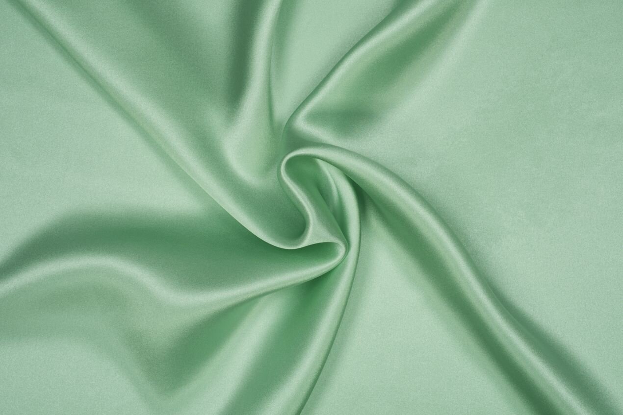 Splývavá hedvábná látka s hladkým lesklým povrchem v mint barvě. Hodí se na halenky, slavnostní šaty i na luxusní noční a spodní prádlo. Výborně si rozumí s šikmým střihem.
