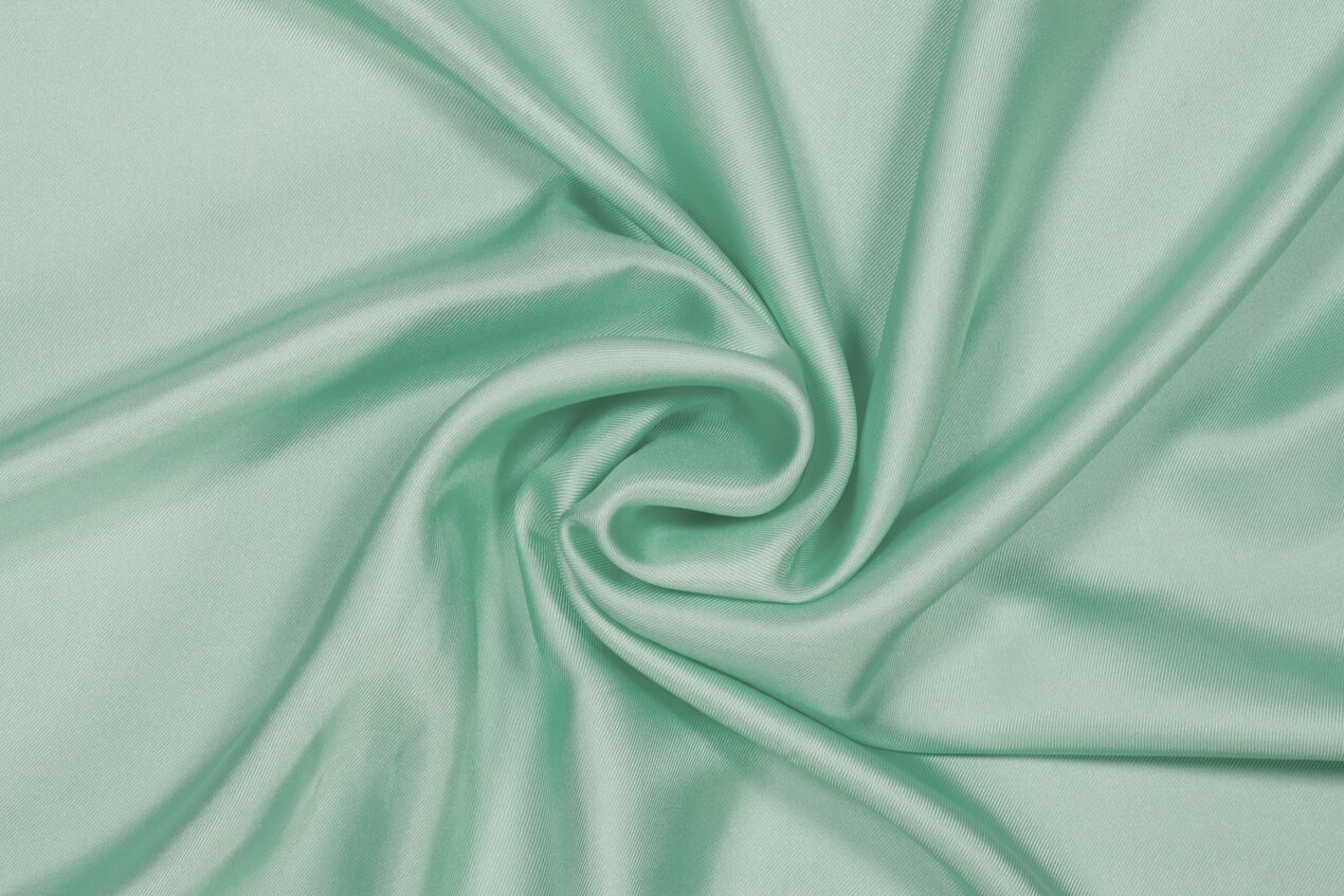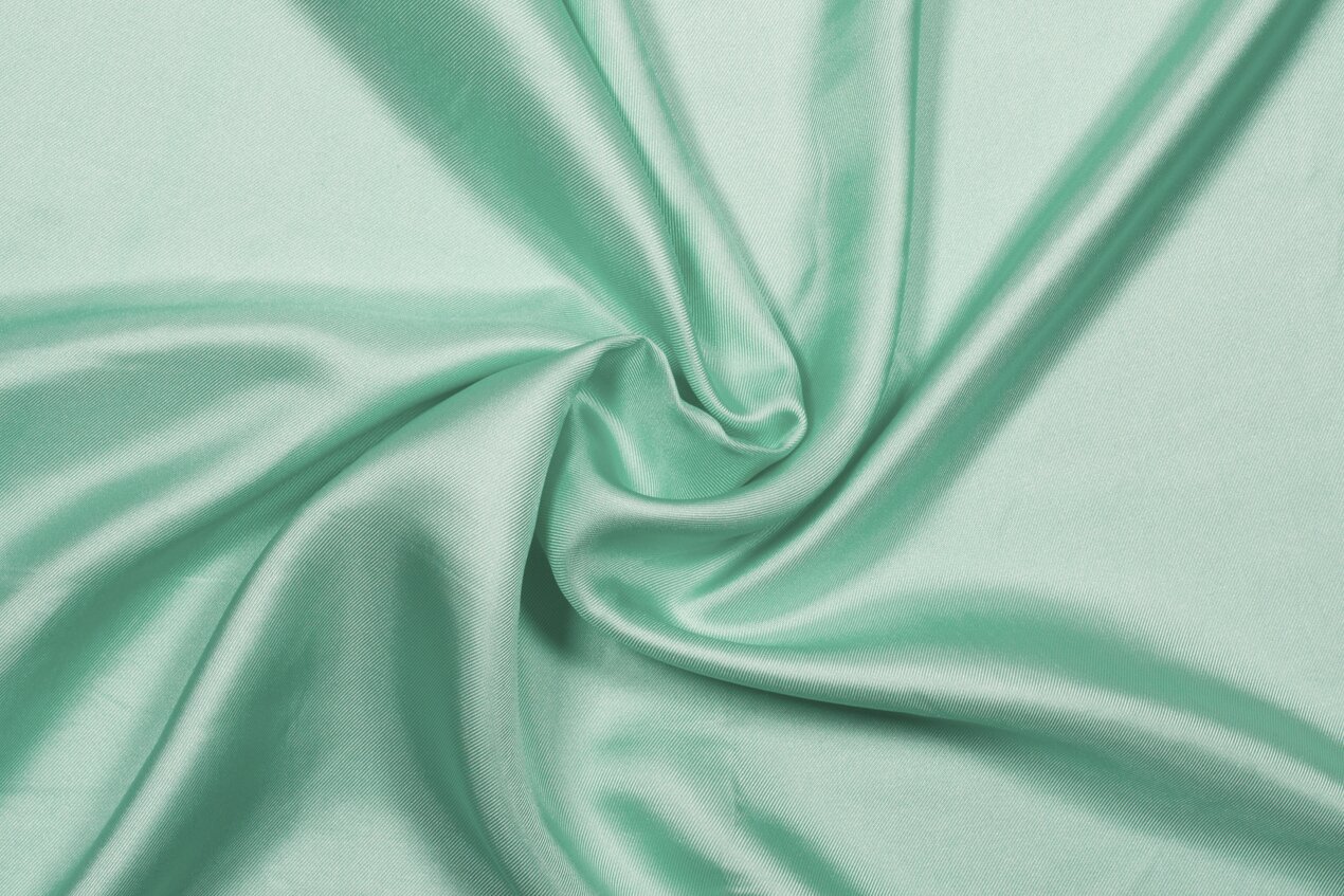 Pevná, hustě tkaná, ale lehká látka z přírodního hedvábí s jemným šikmým proužkováním v aqua barvě vhodná jako luxusní podšívka, na hedvábné šátky, halenky i šaty.