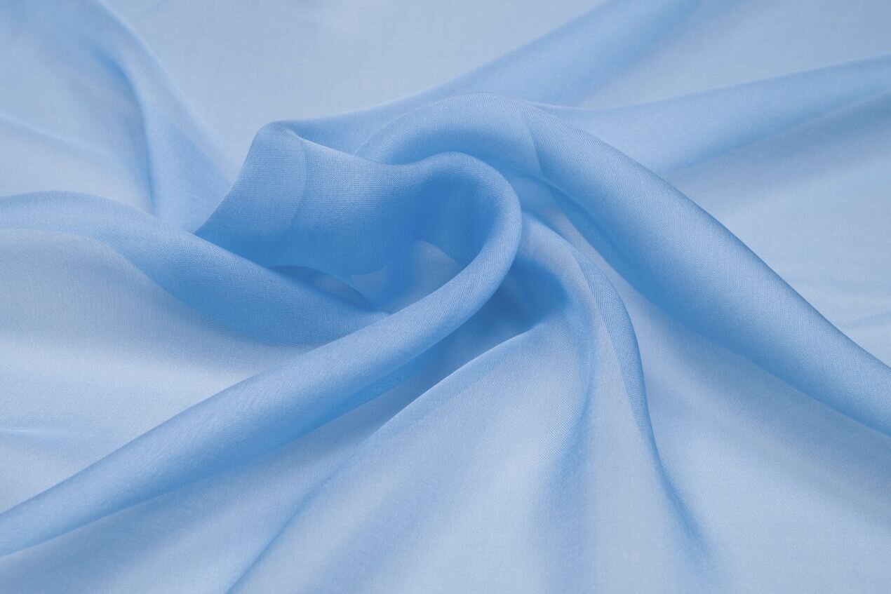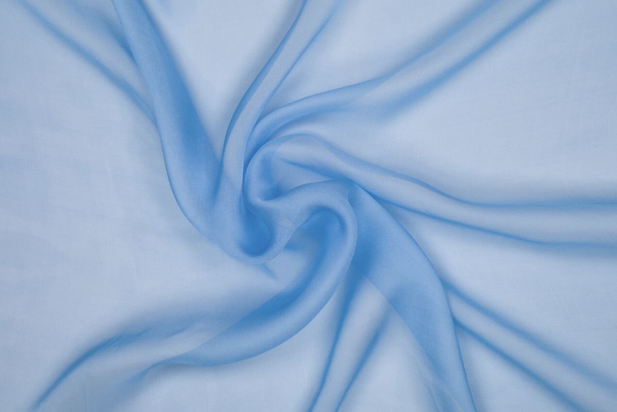 Šifon je jedna z nejlehčích hedvábných látek; jemná, vzdušná a splývavá. Průhledná látka z morušového hedvábí ve světle modré barvě, vhodná na vlající vrstvené šaty, vlečky, svůdné rukávy a vzdušné šály.