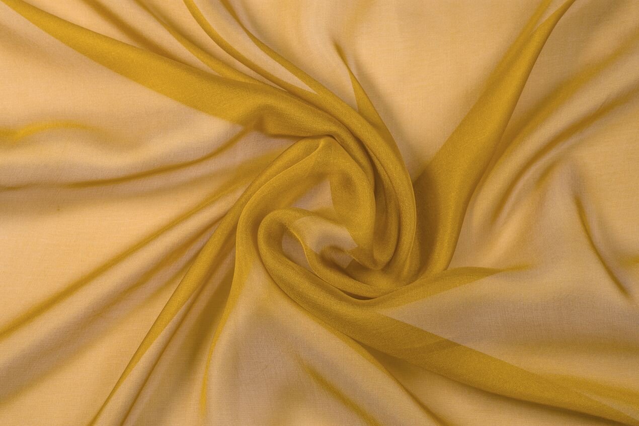 Šifon je jedna z nejlehčích hedvábných látek; jemná, vzdušná a splývavá. Průhledná látka z morušového hedvábí ve zlaté barvě vhodná na vlající vrstvené šaty, vlečky, svůdné rukávy a vzdušné šály.