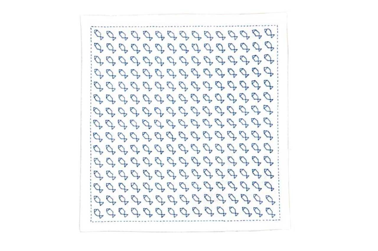 Velká sada na sashiko jednoho stehu je jednoduchý způsob, jak si osvojit nebo prohloubit tuto techniku. Obsahuje bílé plátno s předtištěným vzorem, nit v modré barvě a jehlu. Vyzkoušejte si japonskou techniku prošívání a vyrobte si dekoraci pro váš domov.
