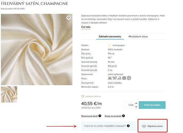 - Otevřete si na e-shopu stránku s látkou, jejíž vzorek si chcete objednat.