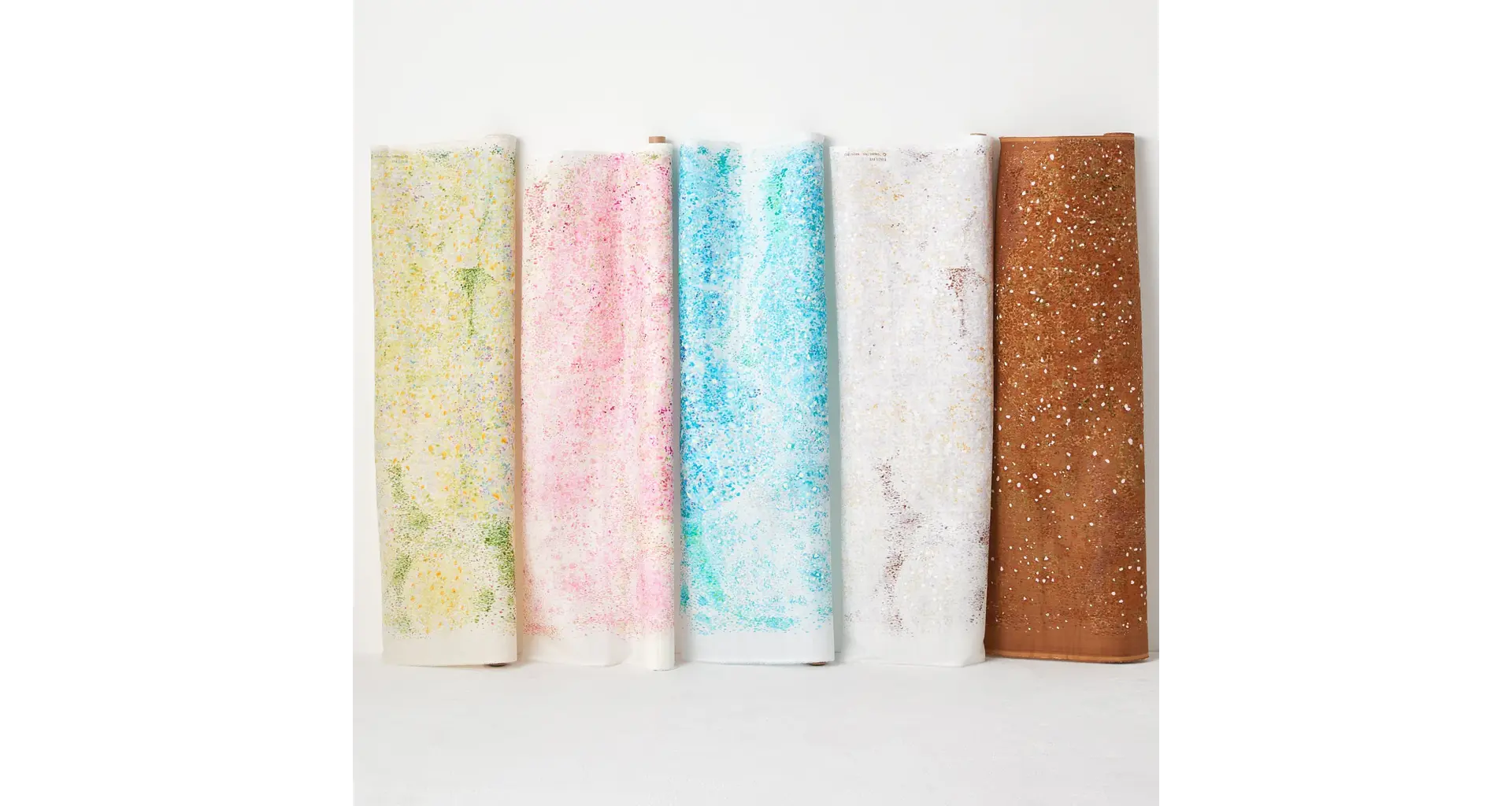 Vzor této látky navrhla designérka Naomi Ito pro svou značku Nani IRO. Paní Ito maluje akvarely inspirované především japonskou přírodou a japonským uměleckým stylem, v němž se mísí minimalismus, lehkost a vynikající pozorovací talent. Její vzory jsou někdy jemné a uklidňující, jindy živé a energické, ale vždy působí poeticky a jsou promyšlené do posledního detailu.
