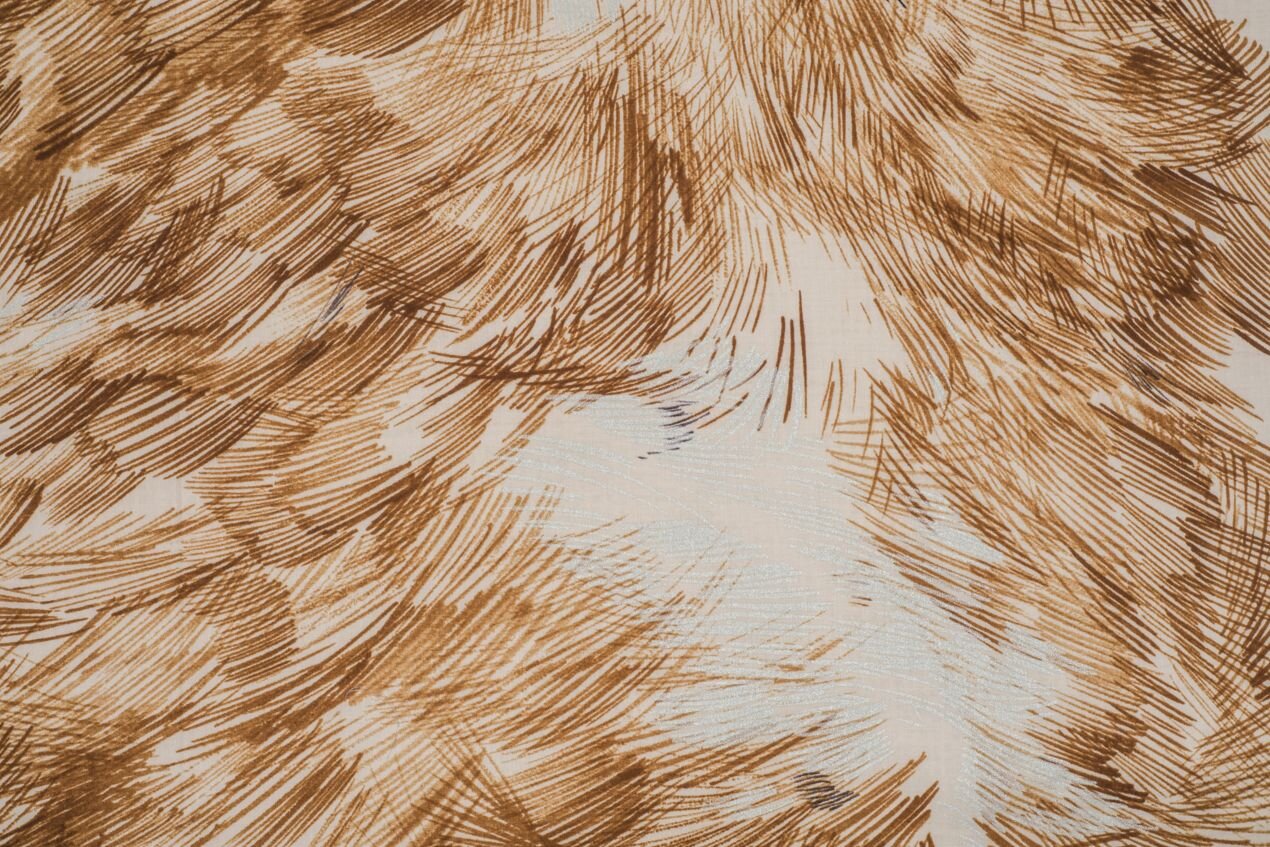Vzor této látky navrhla japonská designérka Naomi Ito pro svou značku Nani IRO. Paní Ito maluje akvarely inspirované především japonskou přírodou a japonským uměleckým stylem, v němž se mísí minimalismus, lehkost a vynikající pozorovací talent. Její vzory jsou někdy jemné a uklidňující, jindy živé a energické, ale vždy působí poeticky a jsou promyšlené do posledního detailu.