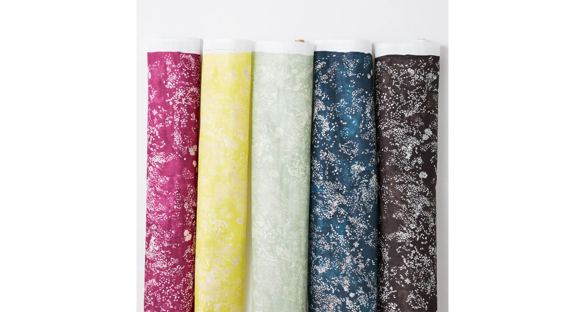 Vzor této látky navrhla japonská designérka Naomi Ito pro svou značku Nani IRO. Paní Ito maluje akvarely inspirované především japonskou přírodou a japonským uměleckým stylem, v němž se mísí minimalismus, lehkost a vynikající pozorovací talent. Její vzory jsou někdy jemné a uklidňující, jindy živé a energické, ale vždy působí poeticky a jsou promyšlené do posledního detailu.