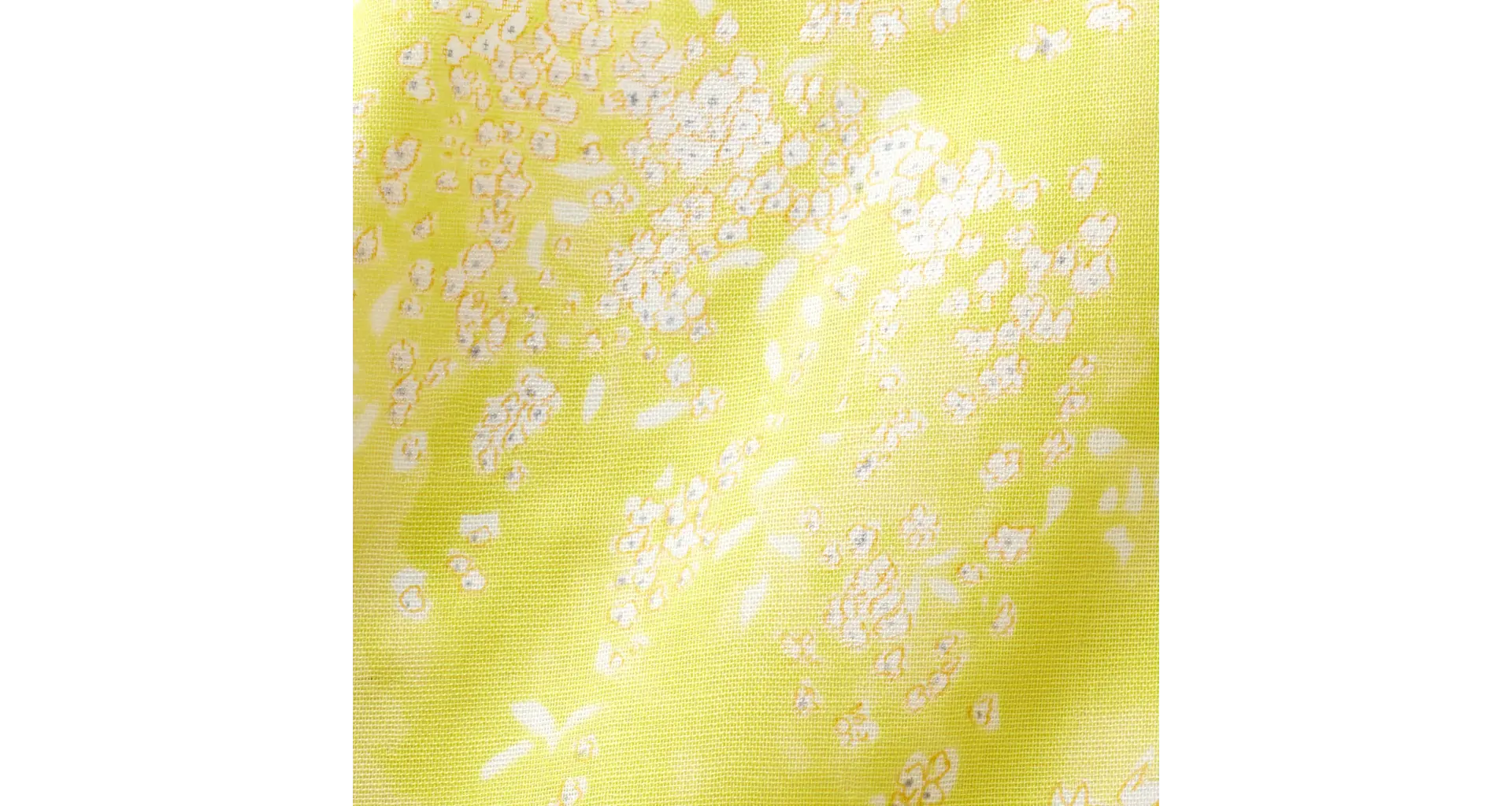 Vzor Lei Nani je inspirován havajskými květinovými věnci „lei“. Tvoří jej drobné bílé kvítky na světlém, pastelovém pozadí; jako byste rozpletli květinovou girlandu a trsy kytiček, okvětní plátky a lístky rozházeli po celé ploše látky. Bílou malbu tu a tam zvýrazňují bledě modré a perleťové stříbrné akcenty.