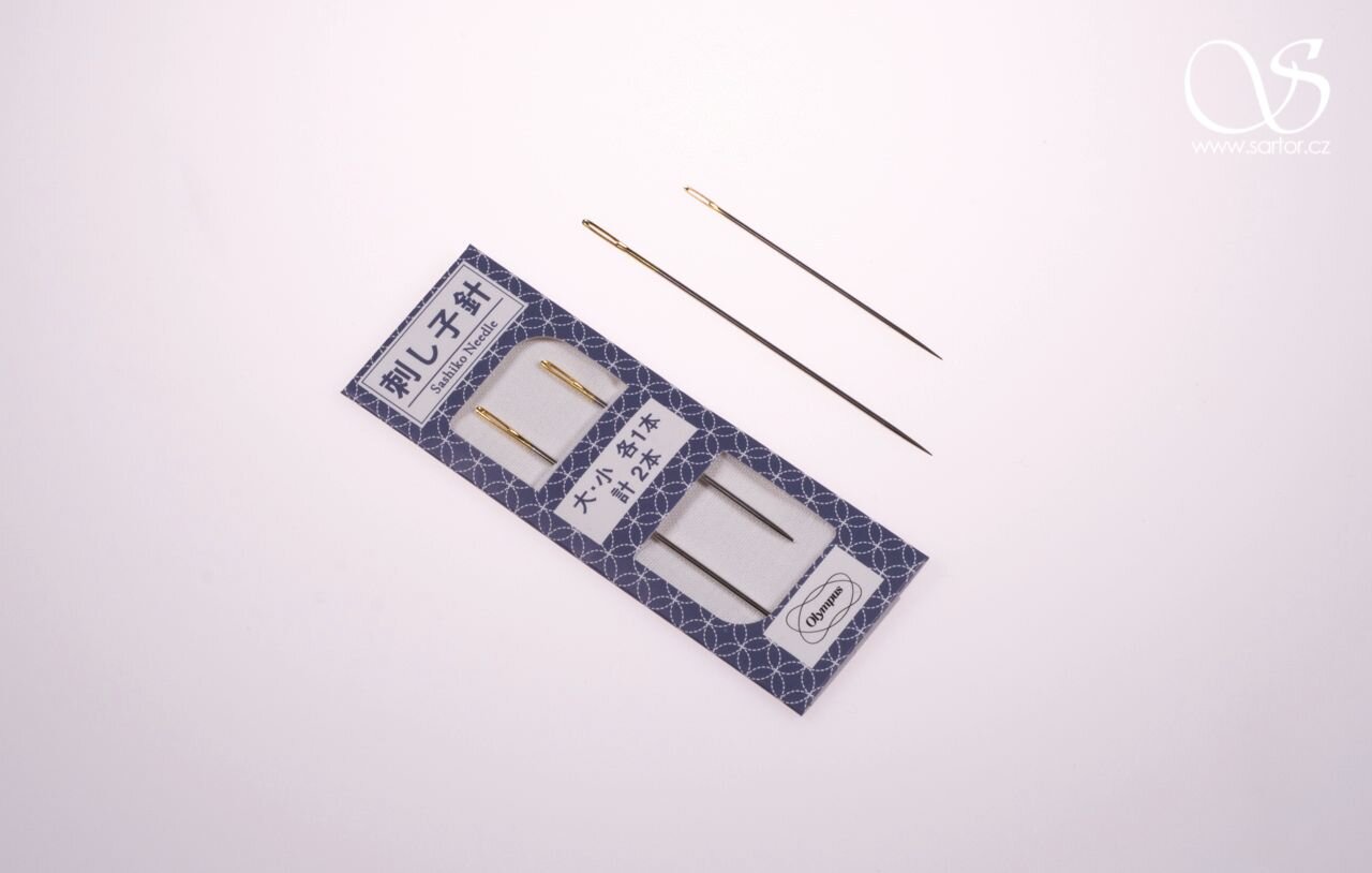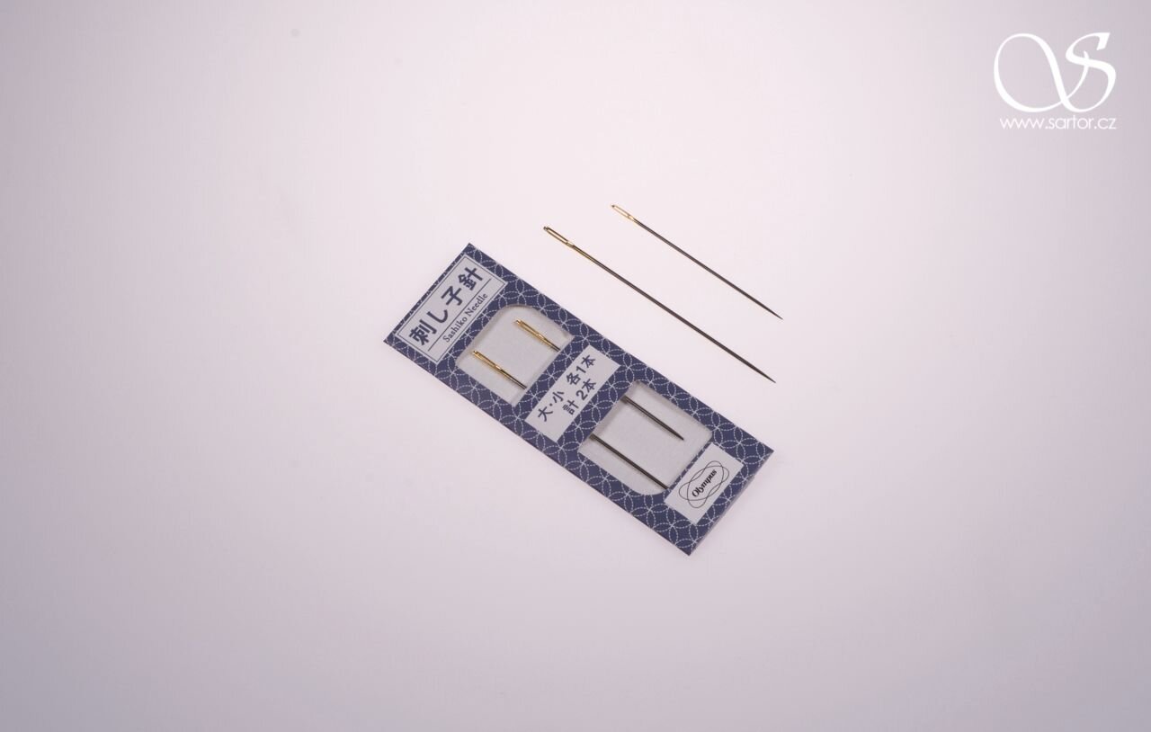 Set dvou speciálních jehel (57 a 67 mm) určených na japonskou techniku sashiko, ozdobné prošívání v minimalistických geometrických vzorech. Jehly jsou od japonské značky Olympus, která je v Japonsku velmi oblíbená a platí za symbol kvality. Vyrábí látky, nitě a jehly na tradiční i moderně pojaté sashiko.