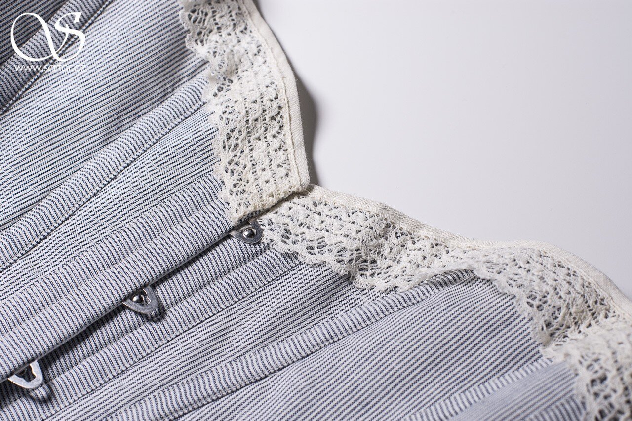 Zapínání je z nerezové oceli a je připevněné na ocelové kostici o šířce 12 mm. Kostice je potažená plastovou vrstvou, která ji chrání před rezivěním. Pro svou pevnost je zapínání vhodné i do extrémně stahovacích korzetů. V historii se tento typ používal od poloviny 19. století.