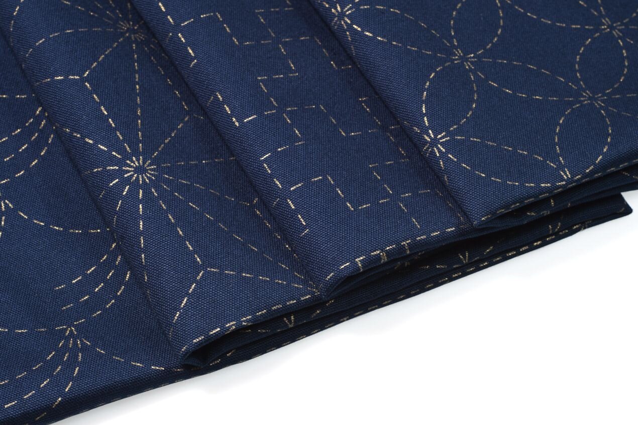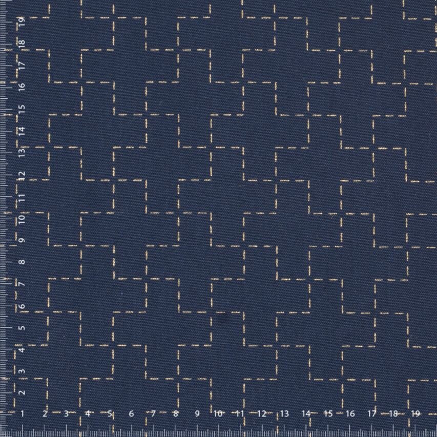 Japonská bavlněná látka na sashiko v indigové barvě s předtištěnými vzory. Jeden kus odpovídá jednomu panelu látky o šířce 108 cm a délce 60 cm, kde je všech osm vzorů. Využijete na procvičení více vzorů a ušití sashikových drobností. Potisk pro vpichy jehlou se odstraní vypráním.