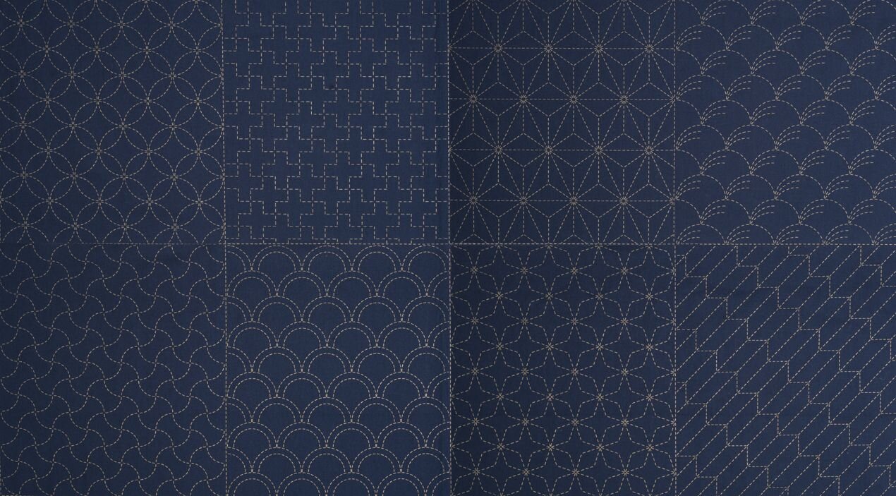 Krásná kombinace modrého indiga a čisté bílé nitě. Geometrie a přesné linie. Pojďte s námi objevit sashiko, japonskou techniku prošívání.