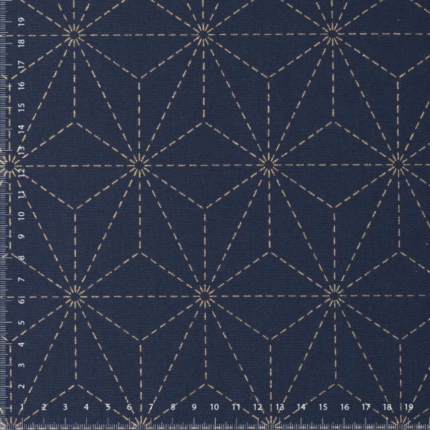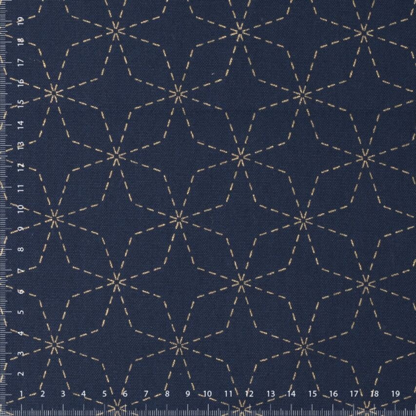 Látka na japonskou techniku sashiko s předtištěným vzorem, který usnadňuje práci – nemusíte si předem kreslit vzor, stačí se držet potisku. Po vyprání hotové výšivky potisk zmizí.