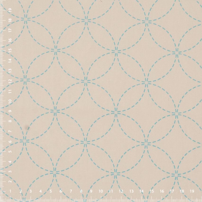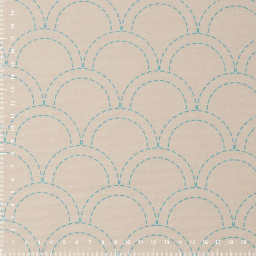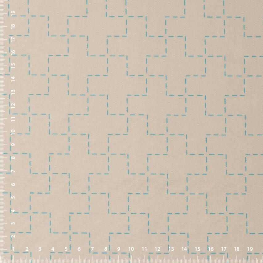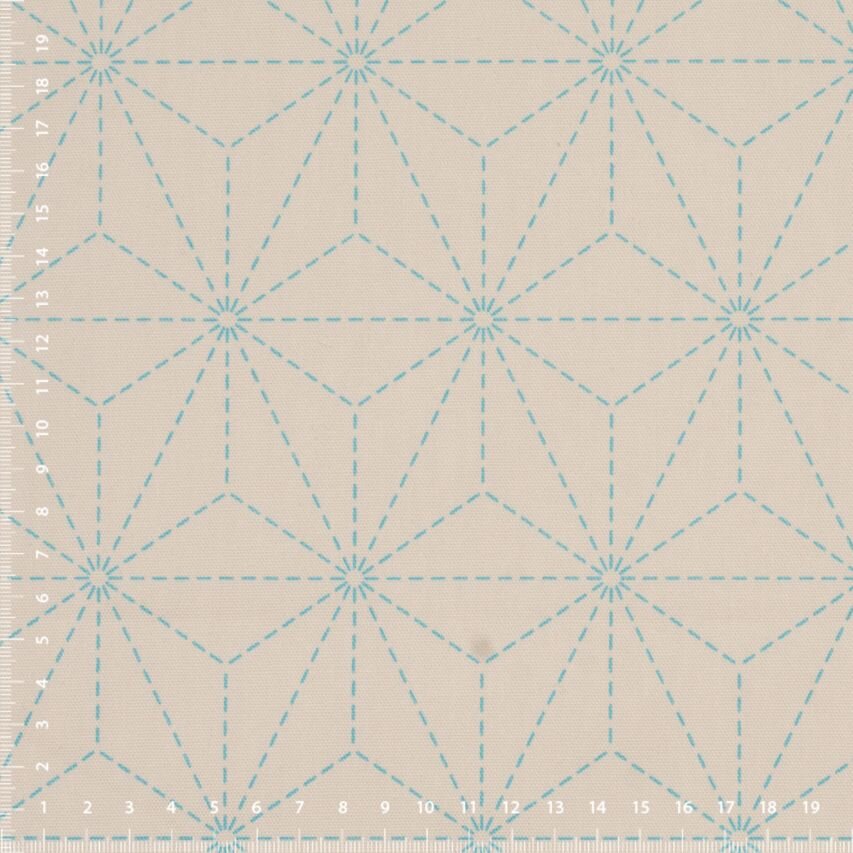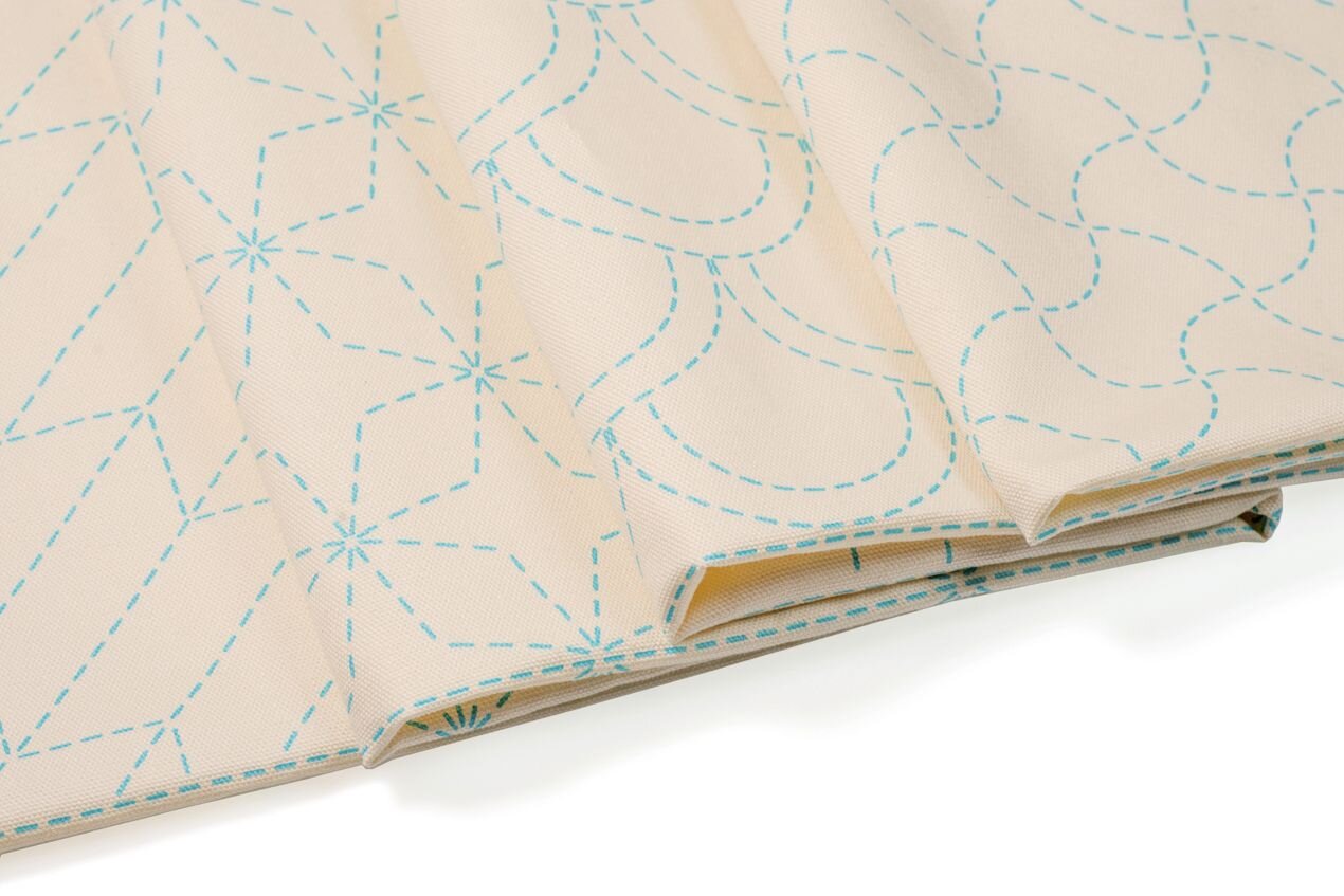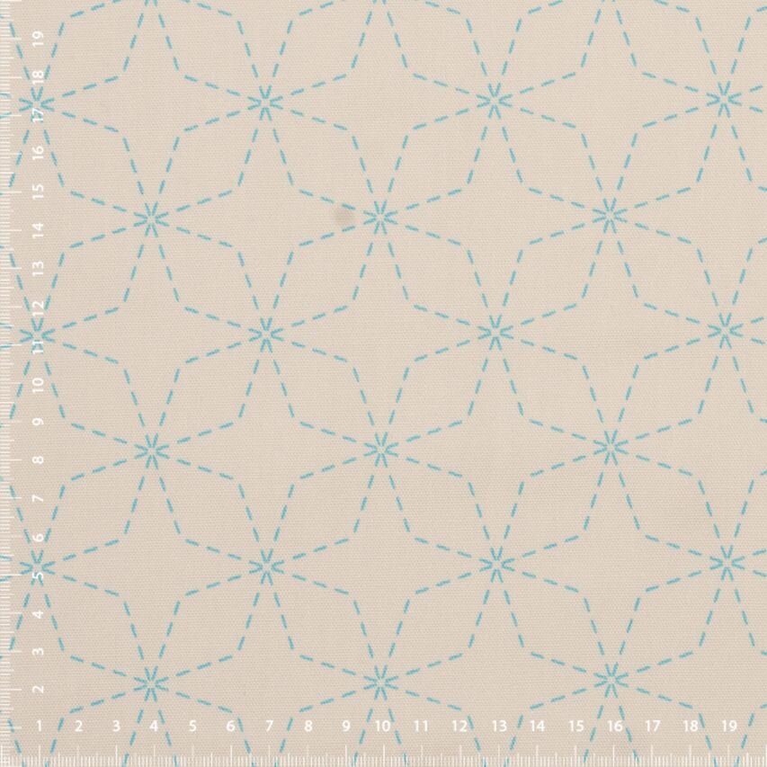 Látka na japonskou techniku sashiko s předtištěným vzorem, který usnadňuje práci – nemusíte si předem kreslit vzor, stačí se držet potisku. Po vyprání hotové výšivky potisk zmizí.