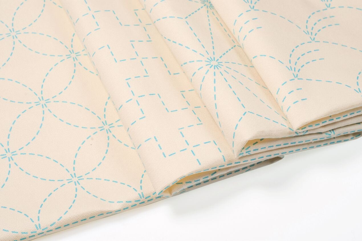 Látka je japonské výroby. Jedná se o kvalitní, stoprocentně bavlněné plátno od renomované značky Olympus, osvědčeného japonského výrobce materiálů a pomůcek na sashiko.