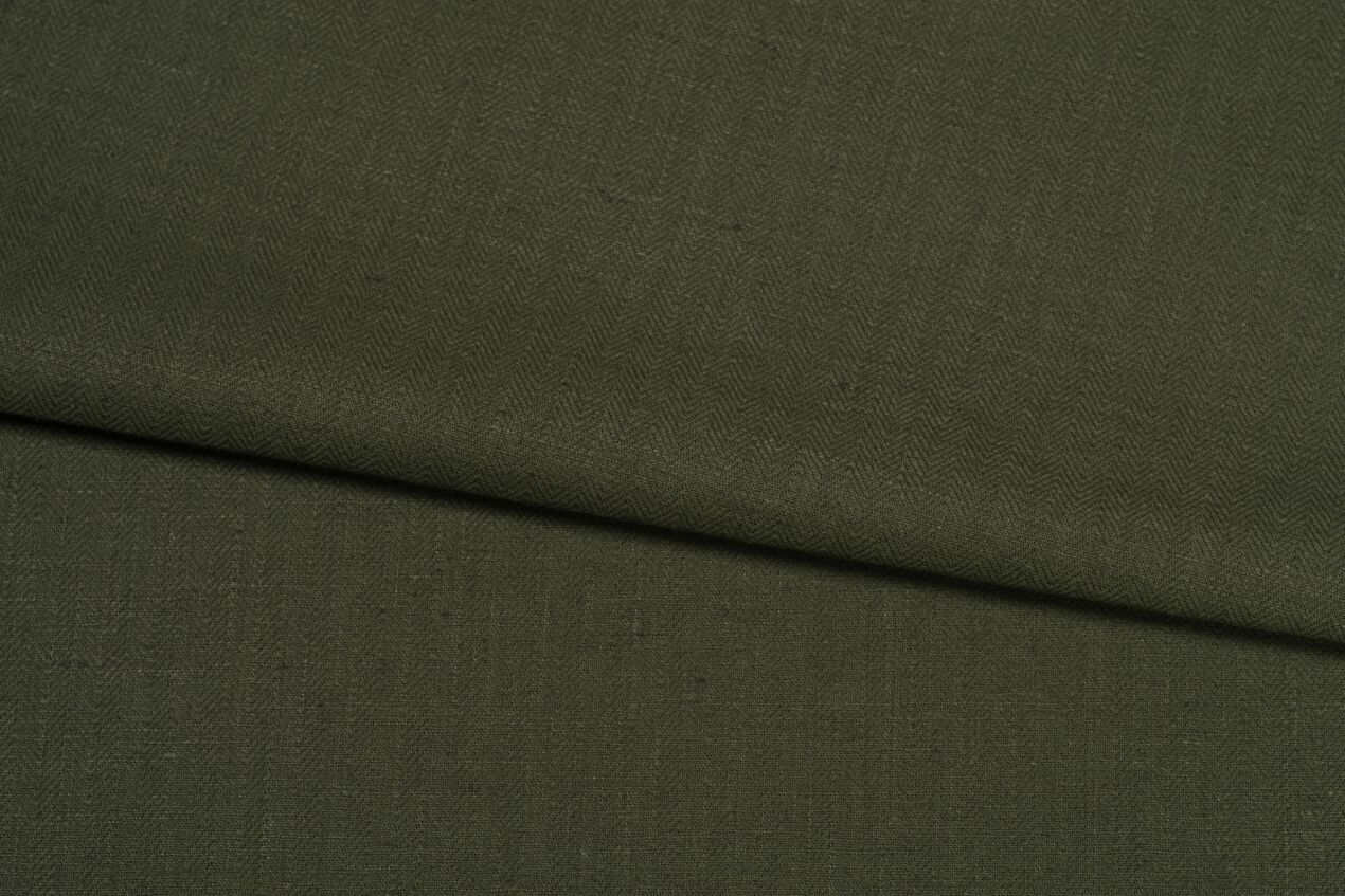 Osvědčená směs dvou oblíbených přírodních materiálů: lnu a bavlny. Tato látka v khaki barvě má zajímavý tkaný vzor rybí kosti. Hodí se na šaty, sukně, kalhoty i saka nebo do bytu na závěsy a polštářky.