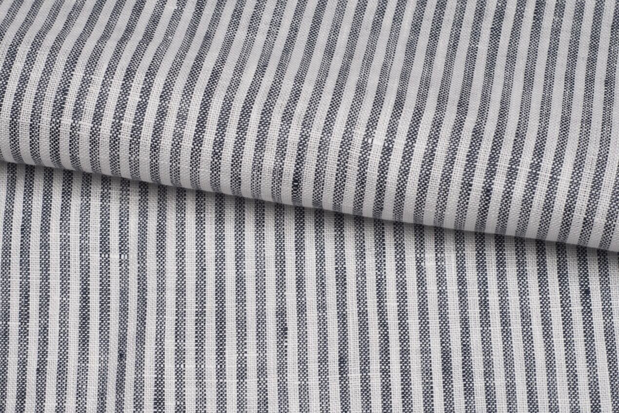 Lehké a jemné lněné plátno z čistého lnu v tmavě modré a bílé barvě. Je to skvělá letní látka nejen na šaty, košile a halenky, ale i do interiéru na vzdušné závěsy.