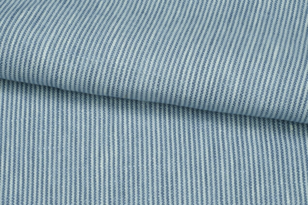 Lněné plátno vyšší gramáže z čistého lnu v bílé a modré barvě. Hodí se nesplývavé sukně, kalhoty, na saka, popřípadě v interiéru na závěsy a polštářky.