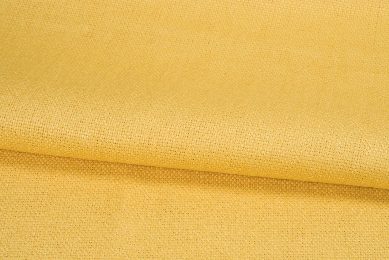 Lněné plátno vyšší gramáže z čistého lnu ve žluté barvě. Hodí se nesplývavé sukně, kalhoty, na saka, popřípadě v interiéru na závěsy a polštářky.