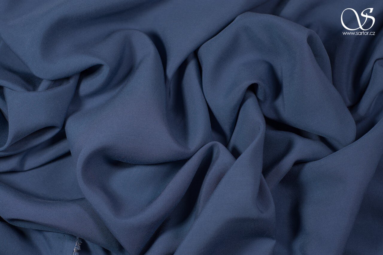 Jemná, splývavá látka s příjemně hebkým omakem v modré barvě. Působí chladivě a hodí se především jako šatovka na lehké šaty nebo halenky.