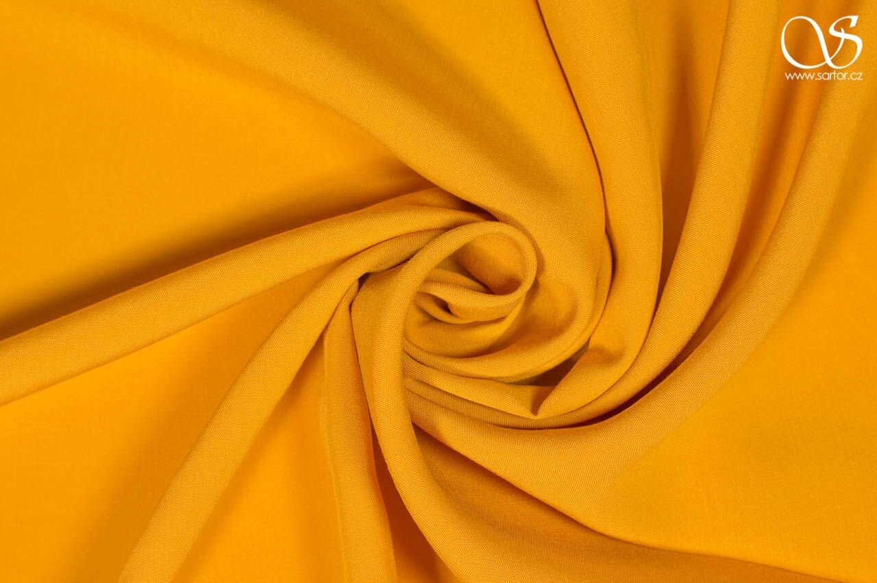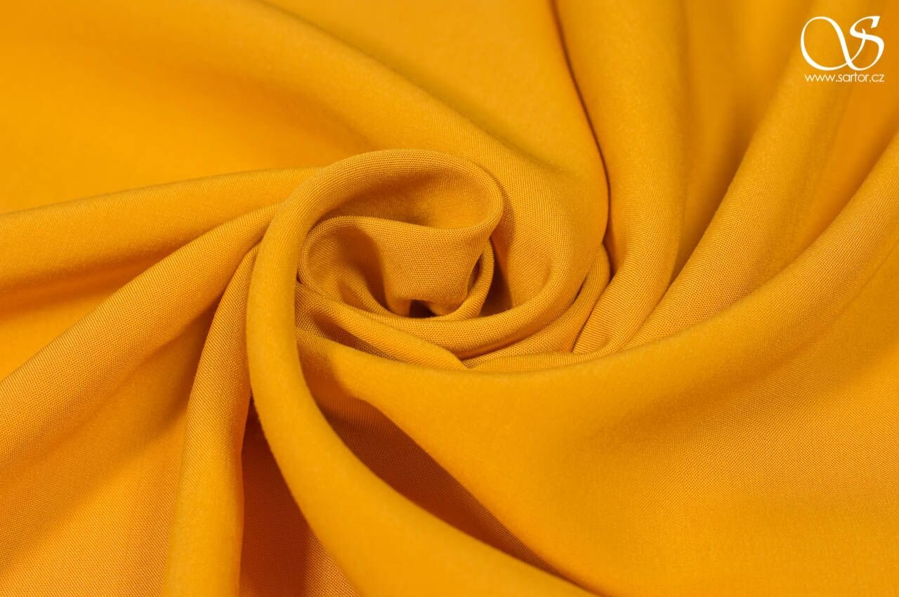 Jemná, splývavá látka s příjemně hebkým omakem v šafránové barvě. Působí chladivě a hodí se především jako šatovka na lehké šaty nebo halenky. Lyocell je vyráběn z přírodních materiálů a jeho výroba je šetrná k životnímu prostředí.