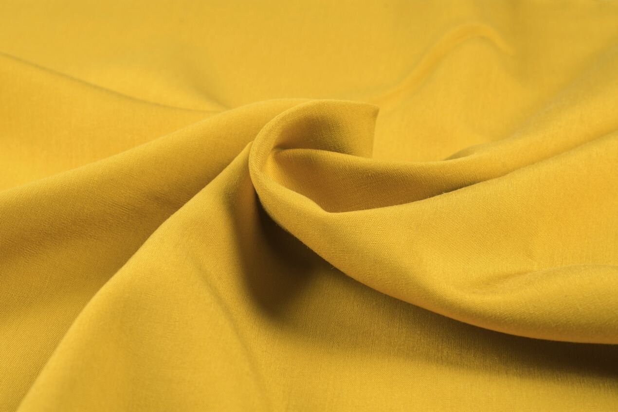 Lehké, chladivé, mírně splývavé lyocellové plátno žluté barvy, které krásně vlaje, je skvělý materiál na šaty, halenky, košile nebo splývavé široké kalhoty. Plátno je na pohled matné, ale v záhybech hází jemné sametové odlesky. Je neuvěřitelně příjemné na kůži.