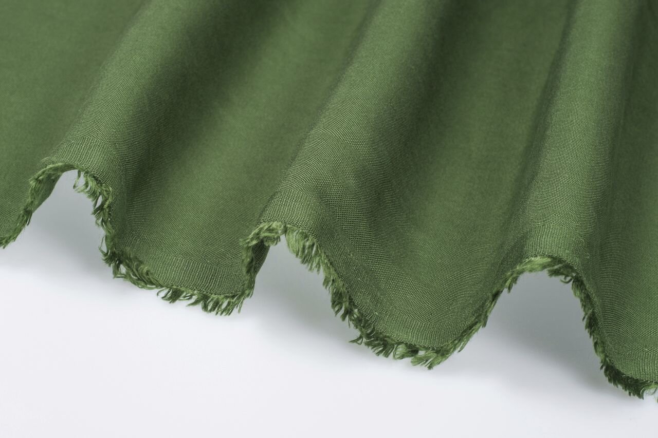 Lehký, mírně splývavý lyocellový serž (kepr) tmavě zelené barvy se skvěle hodí na halenky, topy, letní šaty a sukně, široké povlávající kalhoty, ale také domácí nebo spací oblečení – je totiž hebký na omak a velmi příjemný na kůži.