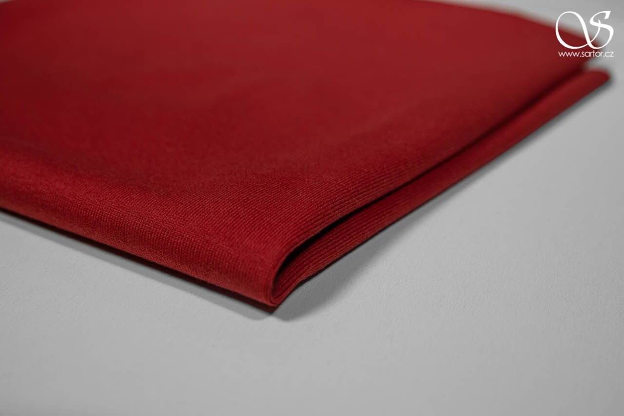 Pevnější úplet z modalu a bavlny v rezavé barvě s výraznější strukturou, která připomíná jemné žebro. Příjemný na dotyk. Skvělý na pohodlné každodenní oblečení.