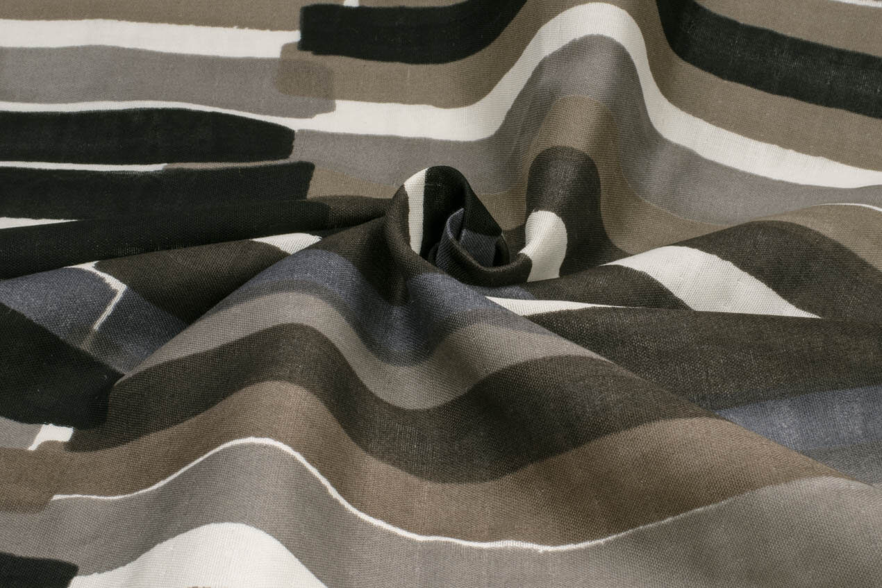 Oryginalny nadruk o nazwie Grace (łaska, wdzięk) od japońskiej projektantki Naomi Ito to wzór w paski w neutralnych kolorach. Brzmi nudno? Nie jest nudny - ręczne malowanie nadało paskom żywości, która nadaje ich stonowanej elegancji odpowiedniego blasku.