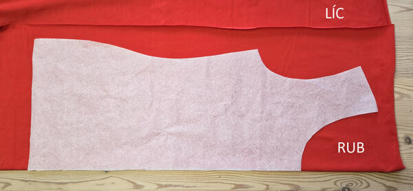 Na běžnou šíři látky kolem 140 cm se obvykle dávají přední a zadní díl vedle sebe, rukávy se kladou pod ně. U menších velikostí se jeden rukáv může vejít i vedle; látku tím sice neušetříte, ale zbyde vám hezčí kus, a až budete mít takové kusy dva, spíchnete z nich třeba dvoubarevné tričko na doma.