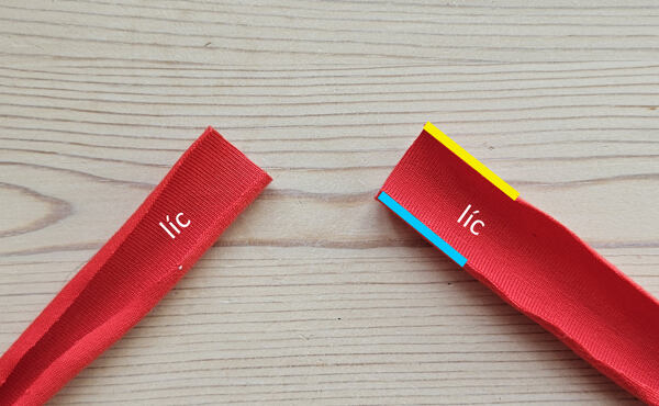 Délka záleží na typu úpletu. Tenké, výrazně pružné látky se hodně natáhnou. Žebrované proužky (zakoupíte jako náplet) mají značnou roztažnost a stříhají se proto také poměrně krátké. U pevnějšího úpletu, např. bavlny, modalu nebo viskózy vyšší gramáže, potřebujete lemovací proužek delší, protože se tolik nenatáhne.