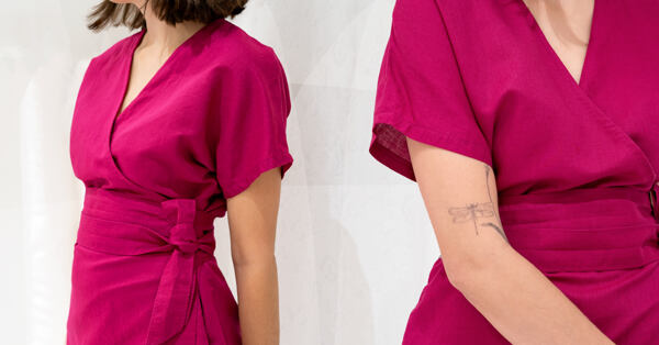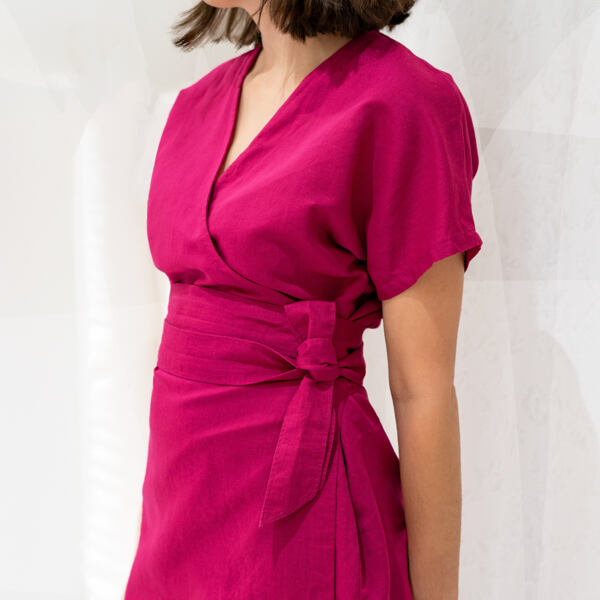 Ušijeme si lněné zavinovací šaty jednoduchého kimonového střihu s krátkými spadlými rukávy. Délka šatů bude midi, ale můžete si ji individuálně upravit. Střih si připravíme přímo před šitím.