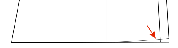 Úpravu zvládnete sami, roh od oka zahněte, zašpendlete a zkontrolujte, jestli jste se trefili. Poté linii zaoblete a napojte do ztracena (viz následující obrázek).