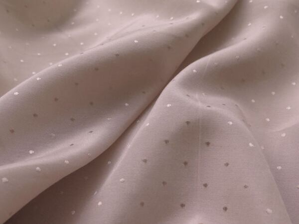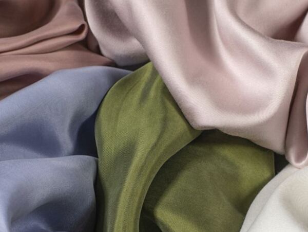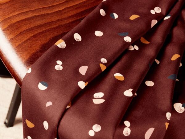 Na fotce šatů je hedvábný krepdešín, ale podobný bude i hedvábný satén, krep marokén, krepžoržet, žoržet a šifon. Samozřejmě jsou i nehedvábné materiály, které krásně splývají, především viskózy – já doporučuji jejich kvalitnější a ekologičtější varianty jako je Tencel (plátno či krepžoržet, serž je o něco tužší), modal, EcoVero nebo cupro.