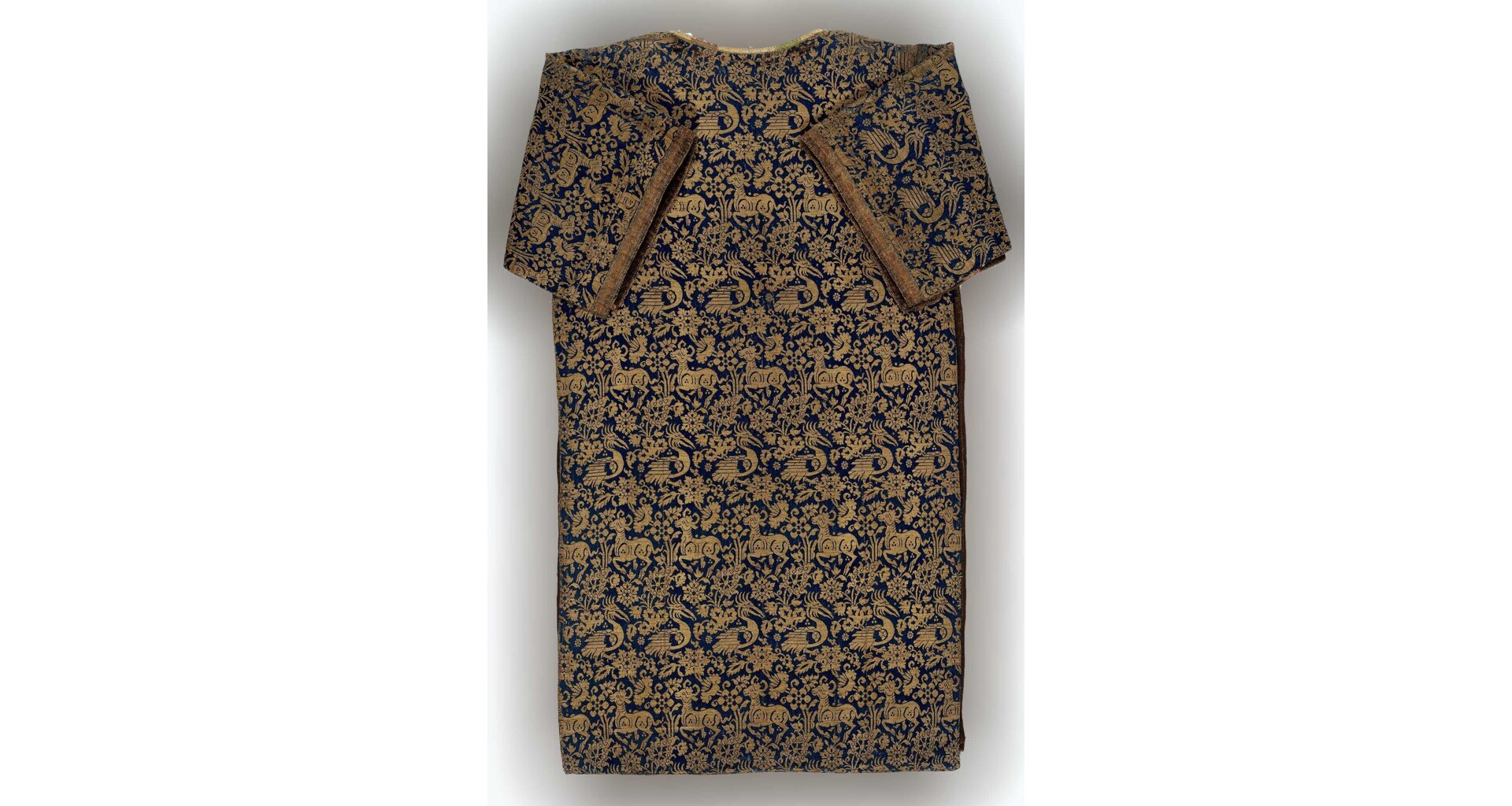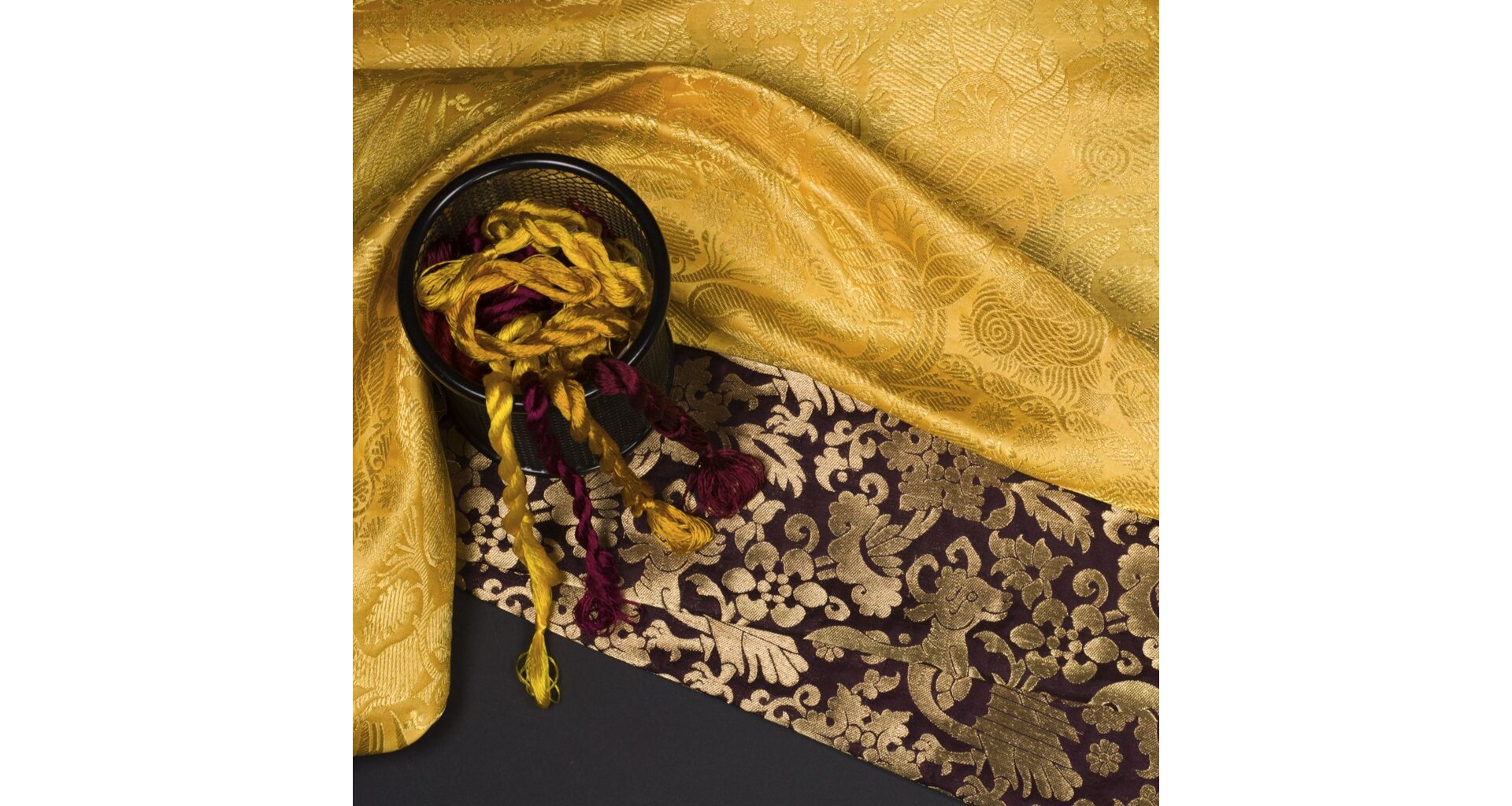 Tento historický brokát je žakárová tkanina z čistého hedvábí a skutečných kovových nití pozlacených pravým zlatem. Díky vysoce kvalitním materiálům je brokát nejen pevný, ale také měkký, jemný na dotek a prodyšný.