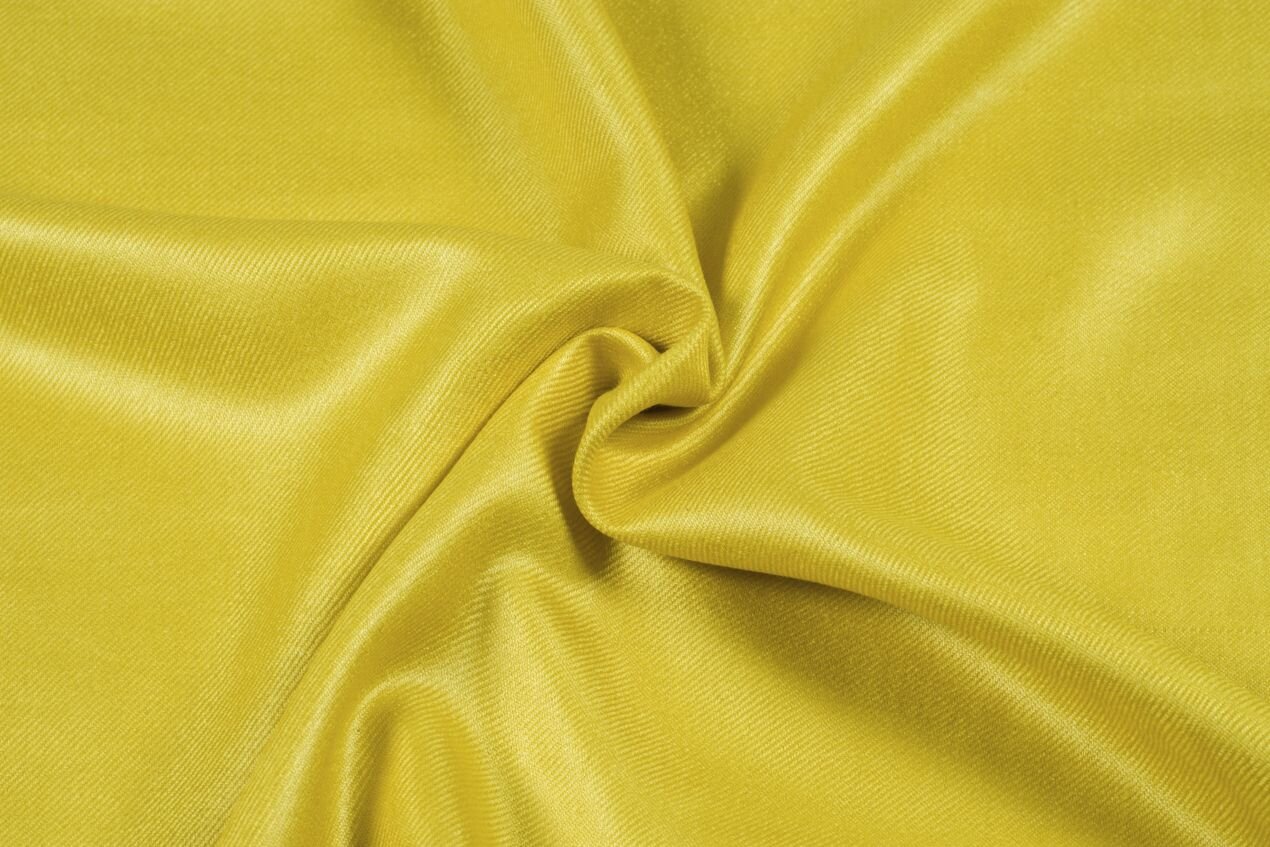 Jemná, hebká zlatá látka z přírodního divokého hedvábí eri tkaná v oblíbené keprové vazbě vytvářející jemné diagonální proužky. Ušijete si z ní nevšední halenky, tuniky, sukně a šaty.