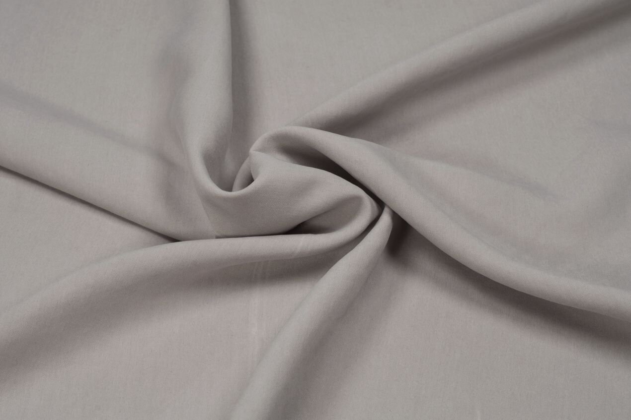 Pevná, hladká látka z pravého hedvábí ve světle šedé barvě. Ušijete si z ní příjemné halenky, šaty, kalhoty i sukně.