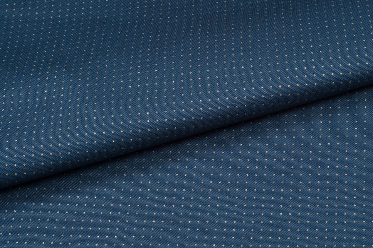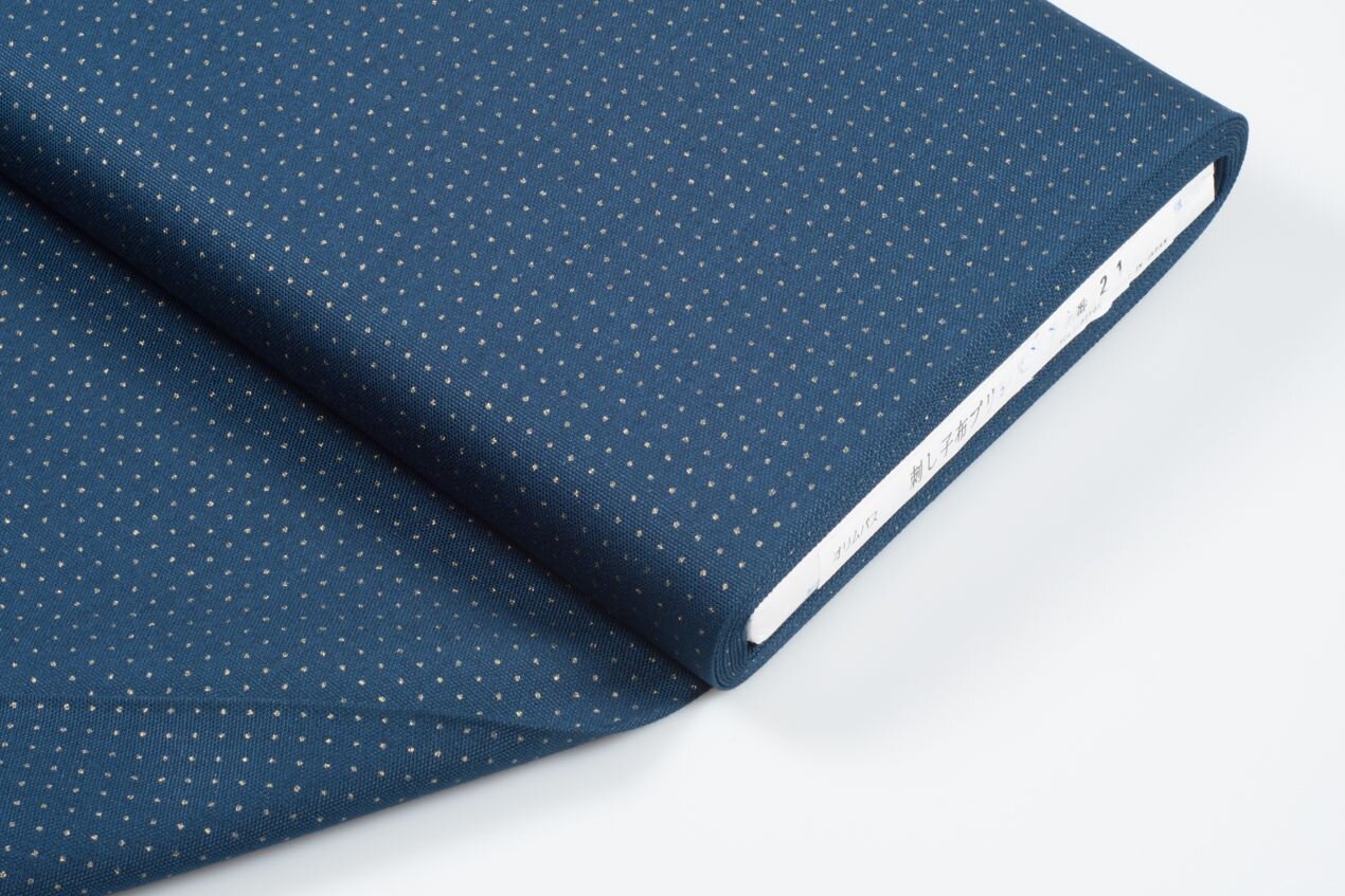 Bavlněná látka na sashiko v indigové barvě s předtištěnou bodovou mřížkou, díky které nemusíte nic rýsovat a můžete rovnou šít vzory hitomezashi. Potisk pro vpichy jehlou se odstraní vypráním.
