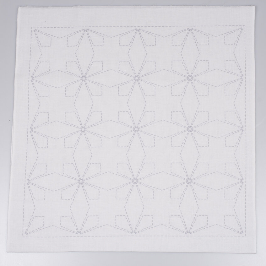 Předtištěná látka na japonskou techniku proševu sashiko ve velikosti tradiční japonské utěrky hana-fukin. Ideální malý projekt pro začátečníky i pokročilé.