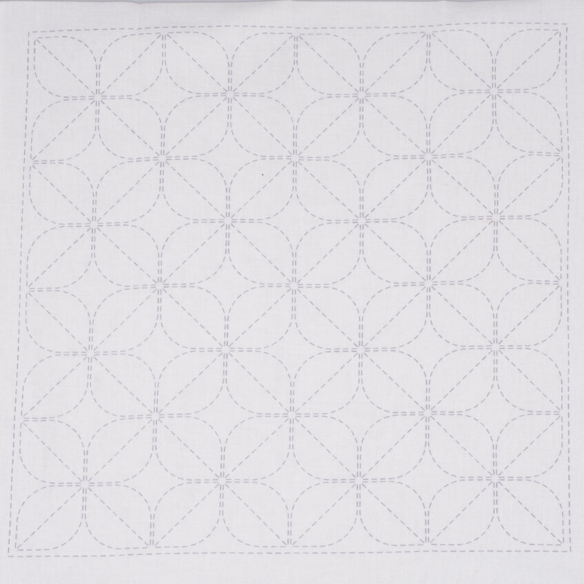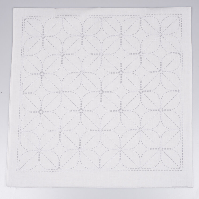 Předtištěná látka na japonskou techniku proševu sashiko ve velikosti tradiční japonské utěrky hana-fukin. Ideální malý projekt pro začátečníky i pokročilé.