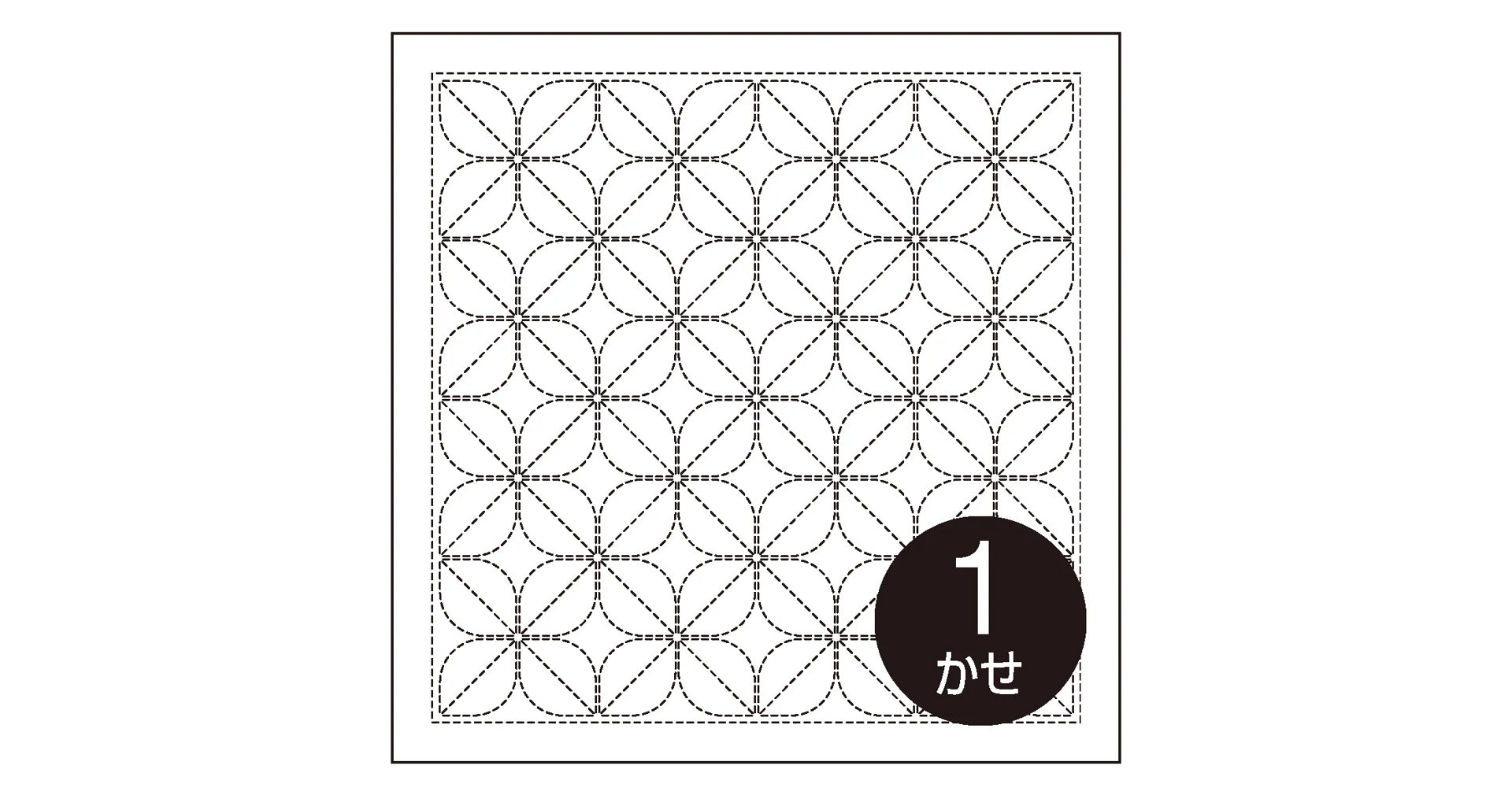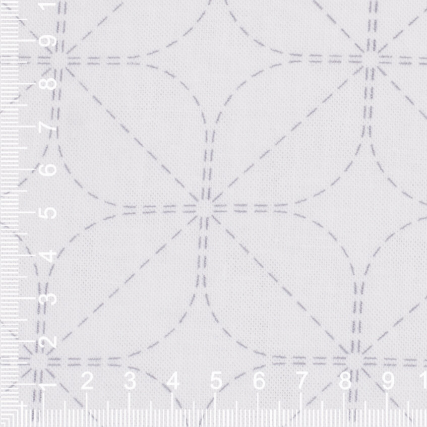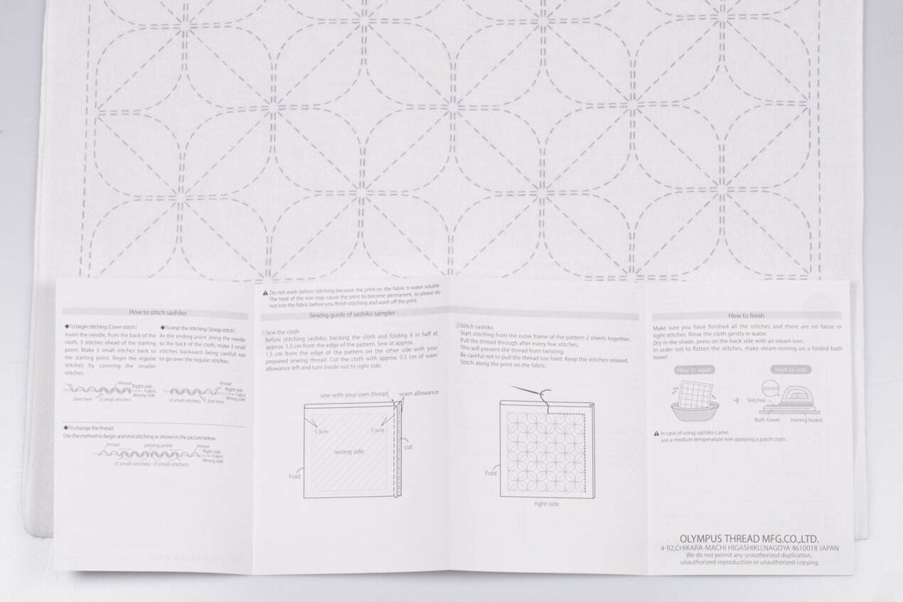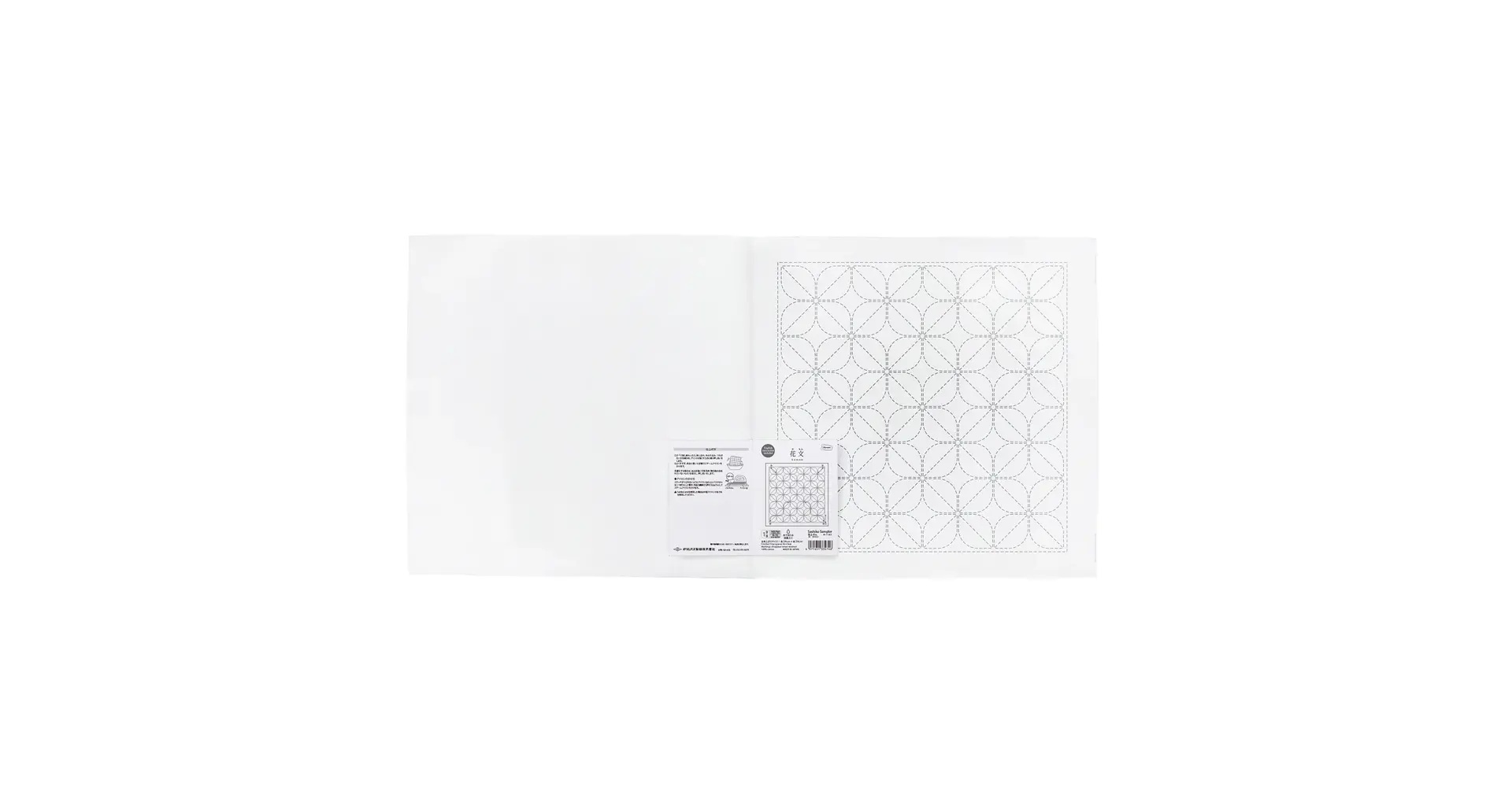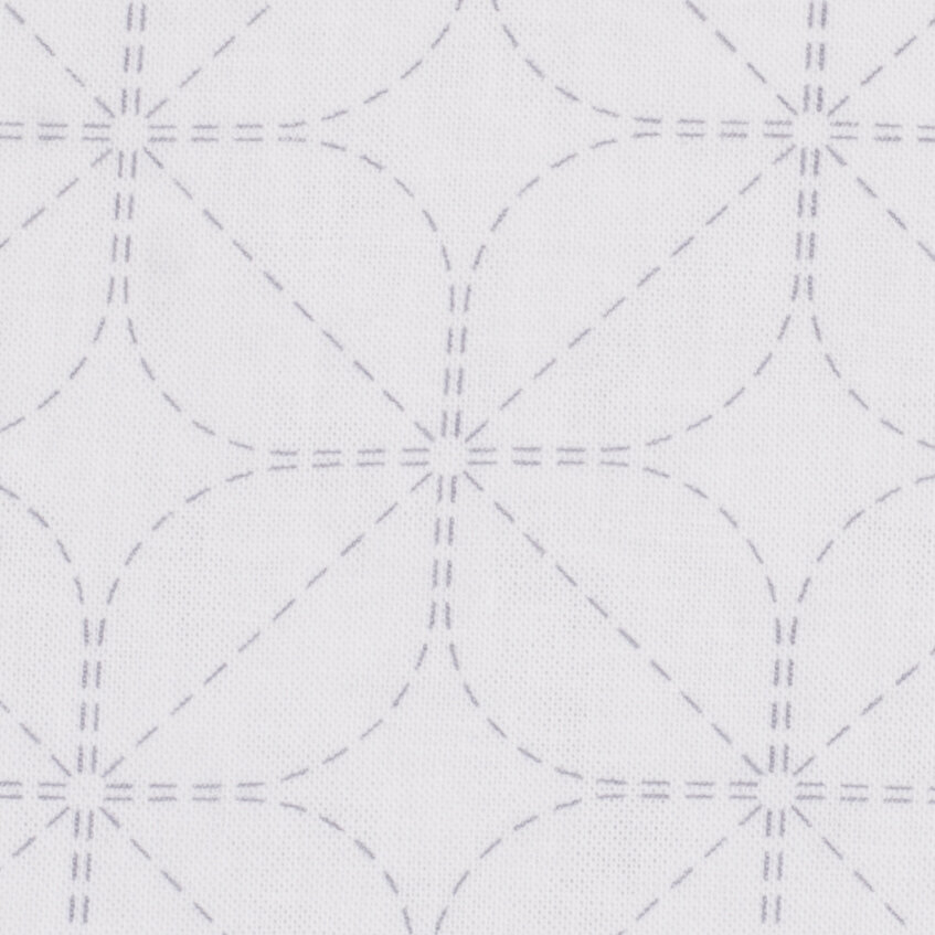 Předtištěná látka na japonskou techniku proševu sashiko ve velikosti tradiční japonské utěrky hana-fukin. Na jedné polovině bílé látky je smyvatelný vzor, druhá polovina slouží k založení rubu. Po vyšití a sešití získáte krásnou oboustrannou utěrku s čistým vzhledem z líce i rubu.