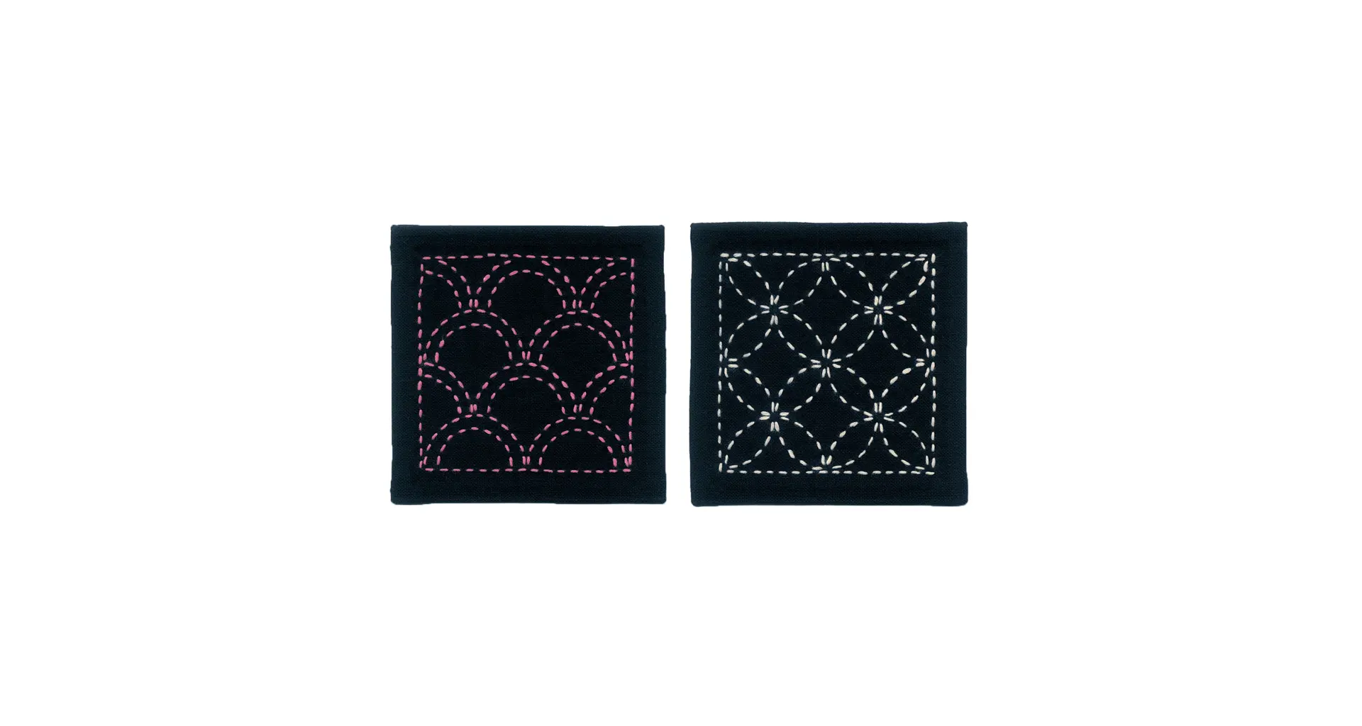 Sada na dva malé sashiko čtverce. Obsahuje indigovou látku s předtištěným vzorem, přízi ve dvou barvách, jehlu a návod. Vyzkoušejte si techniku sashiko a odměňte se krásnou drobností.