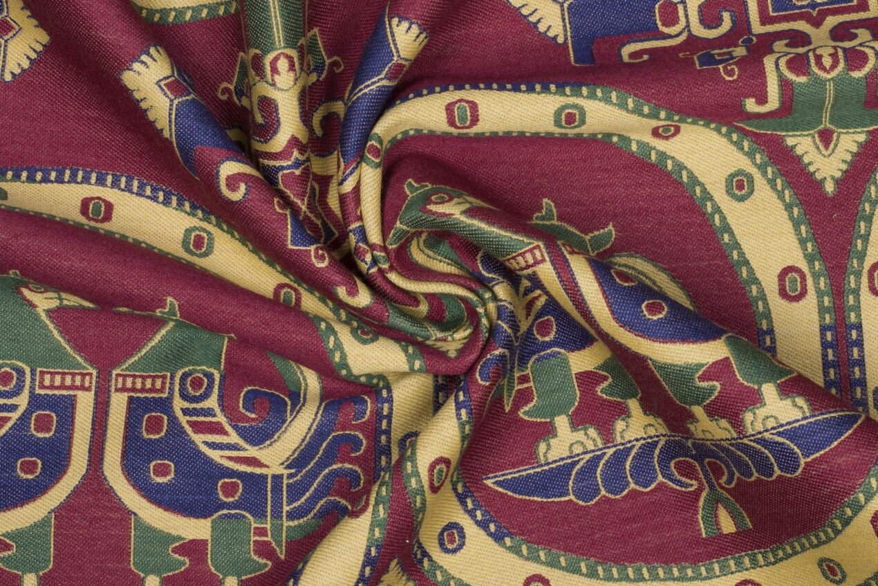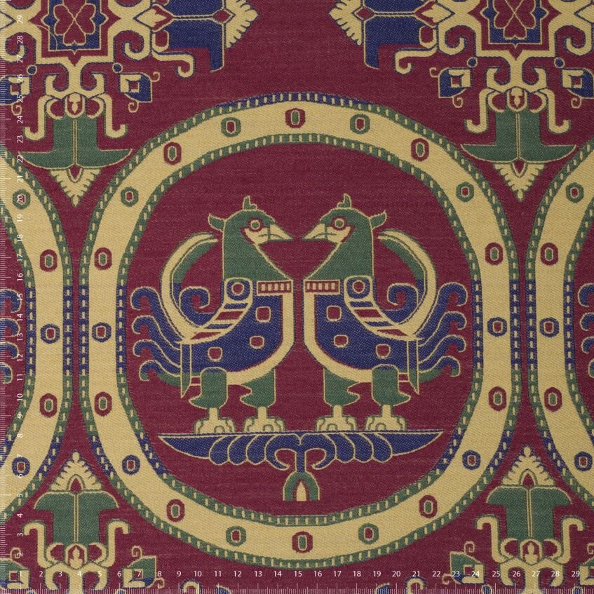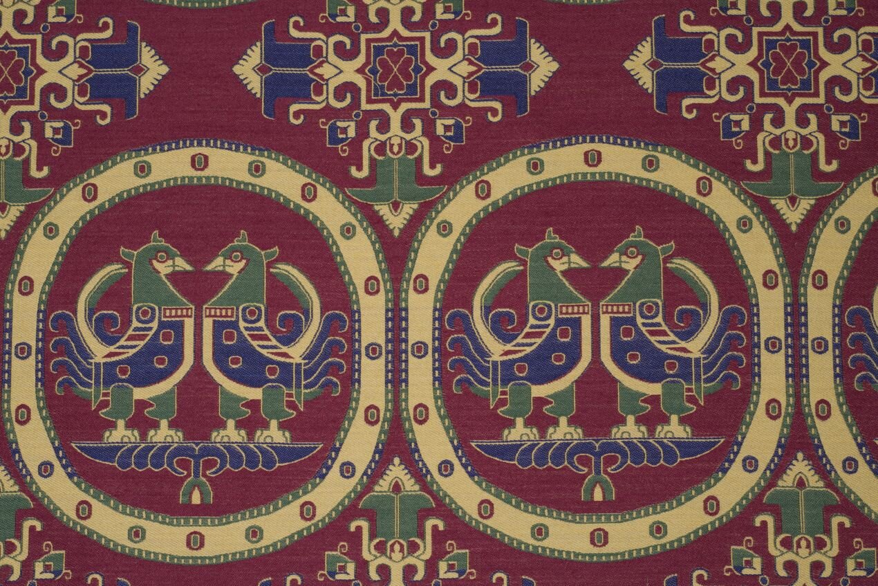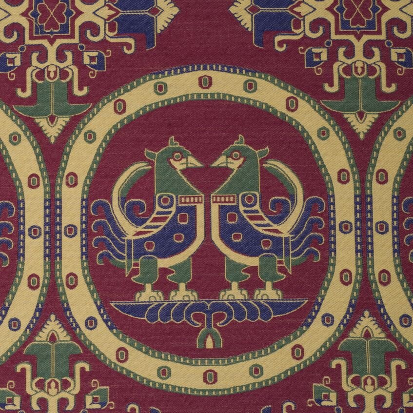 Tato luxusní hedvábná látka je inspirována textilií z 8. století pocházející ze starověké střední Asie z někdejší oblasti Sogdiana. Perfektně se hodí pro šití autentických historických kostýmů, luxusních interiérových doplňků nebo jako elegantní a nadčasový módní kousek.